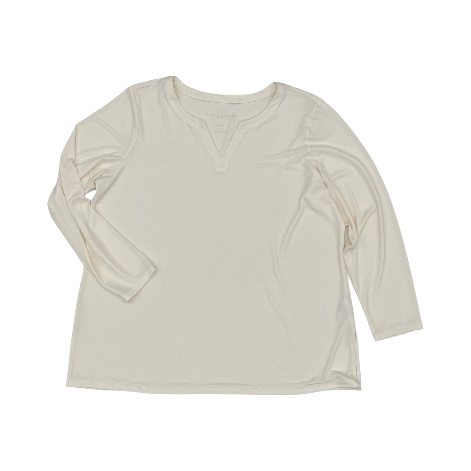 Blouse 3/4 Sleeve By Susan Graver In Cream, Size:Xlp