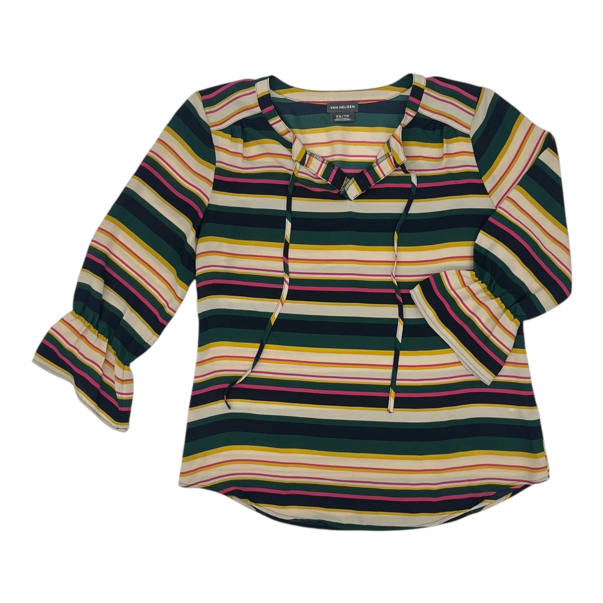 Blouse 3/4 Sleeve By Van Heusen In Striped Pattern, Size:Xs