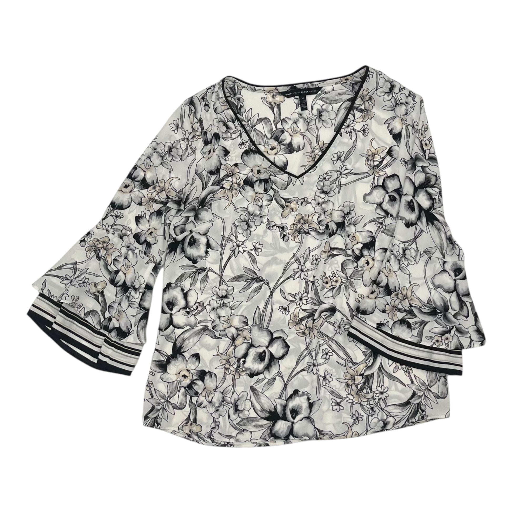 Blouse 3/4 Sleeve By White House Black Market In Black & White, Size:S