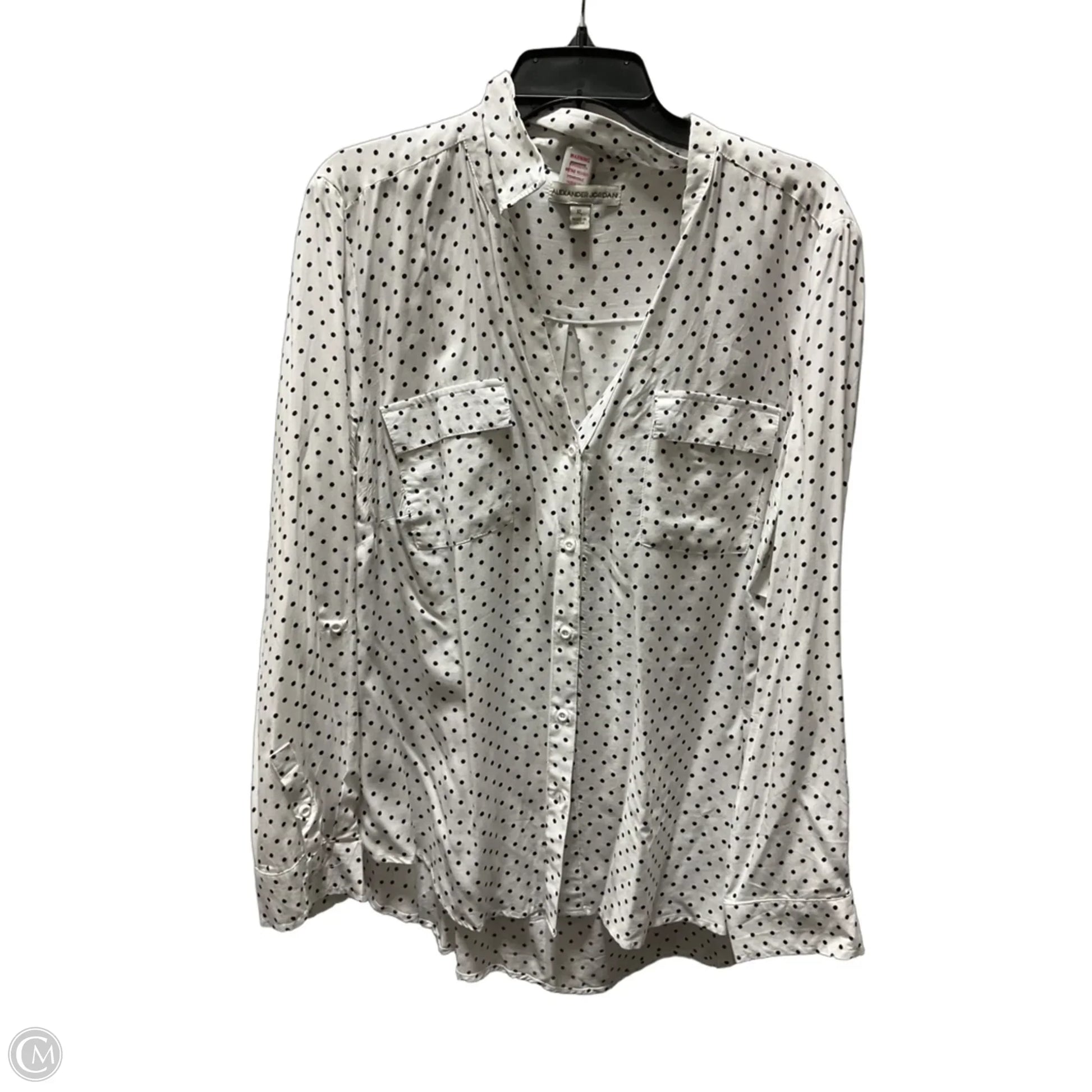 Blouse Long Sleeve By Alexander Jordan In Polkadot Pattern, Size: Xl