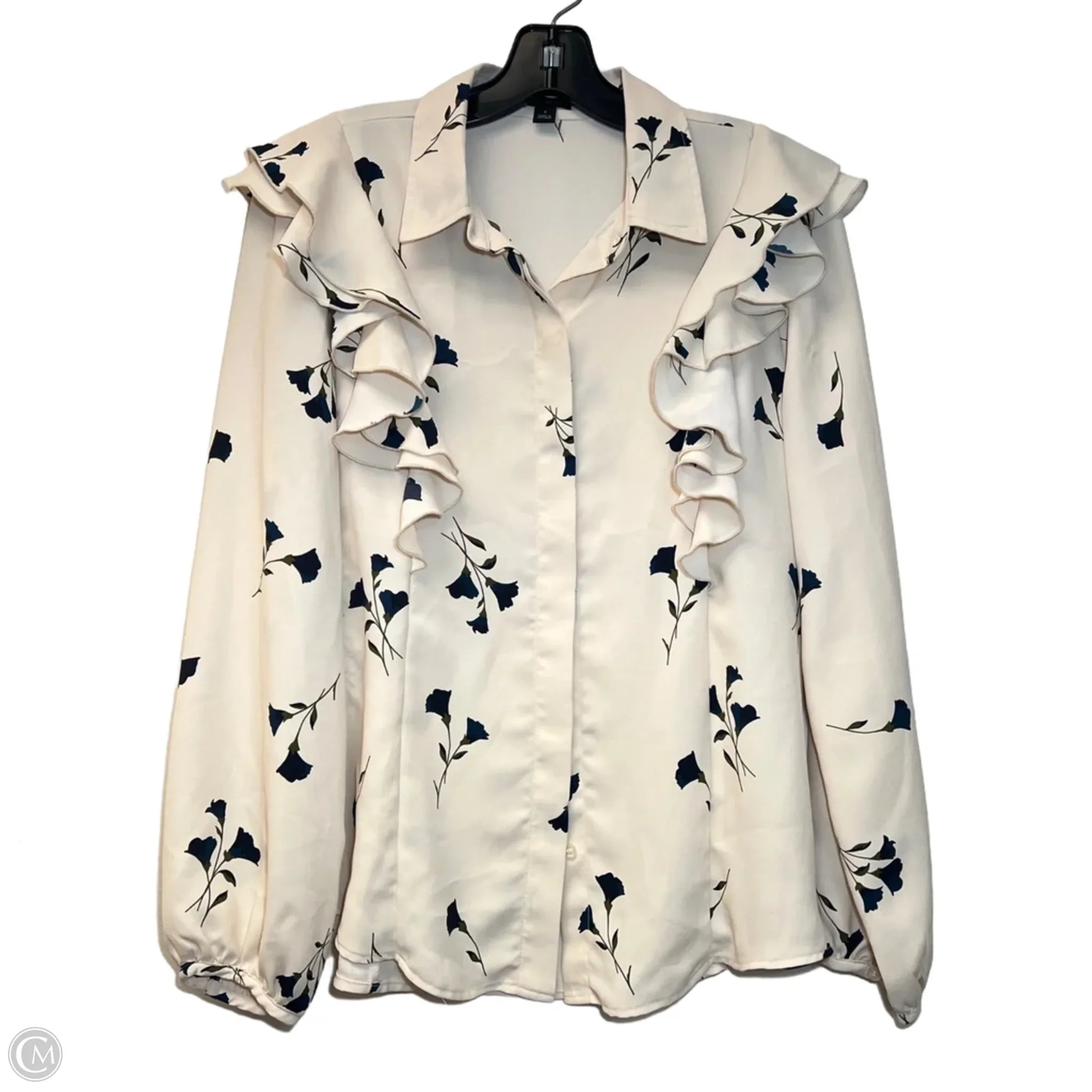 Blouse Long Sleeve By Ann Taylor In Blue & Cream, Size: S