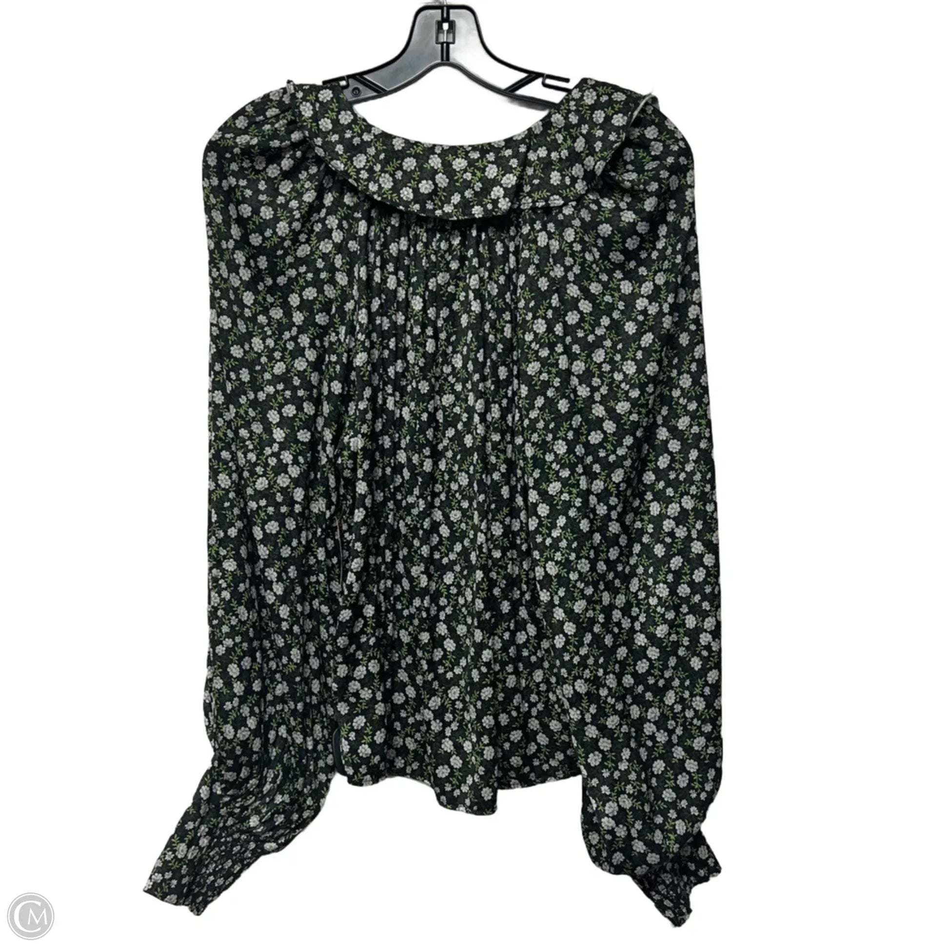 Blouse Long Sleeve By Anthropologie In Black & Green, Size: M