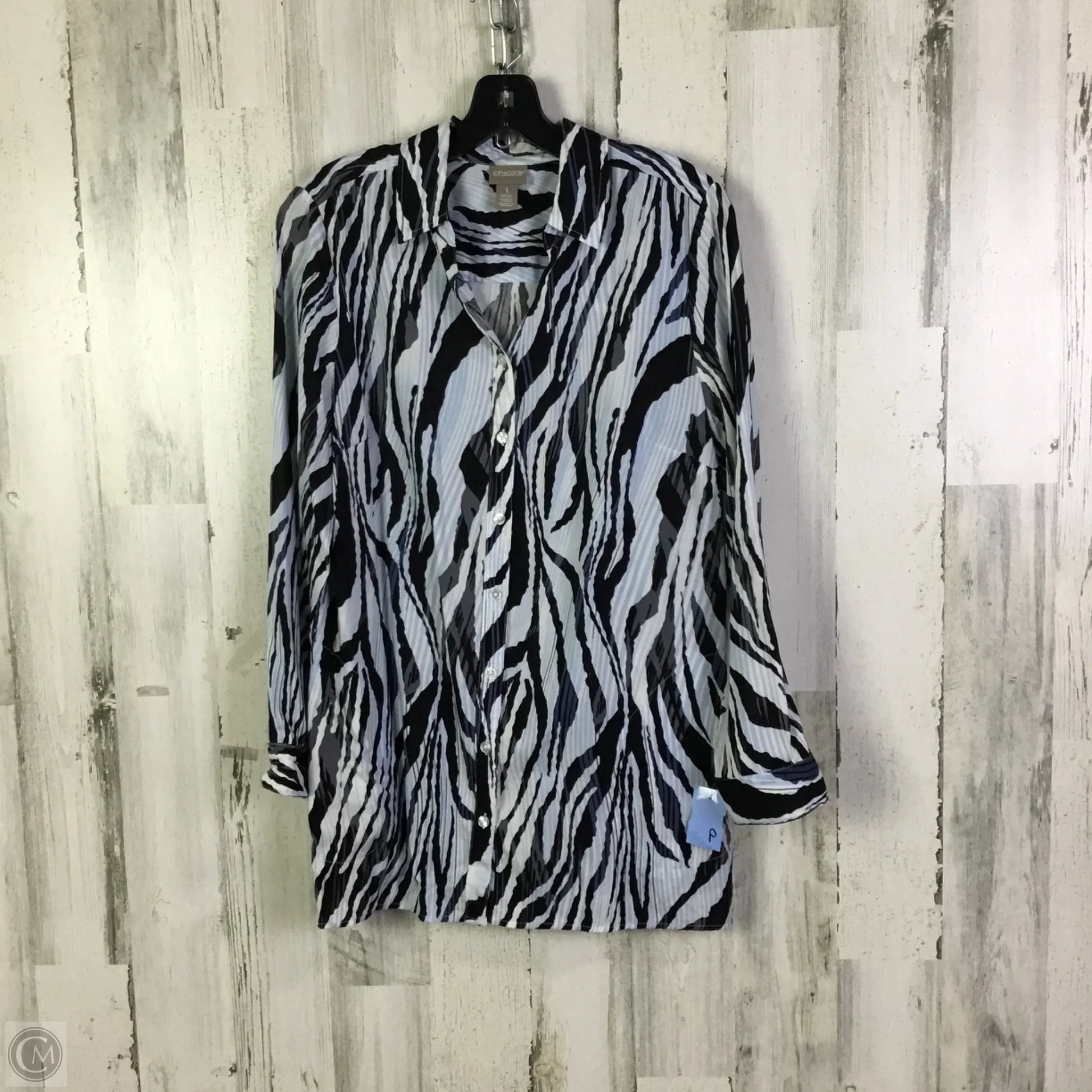 Blouse Long Sleeve By Chicos In Black & Blue, Size: M