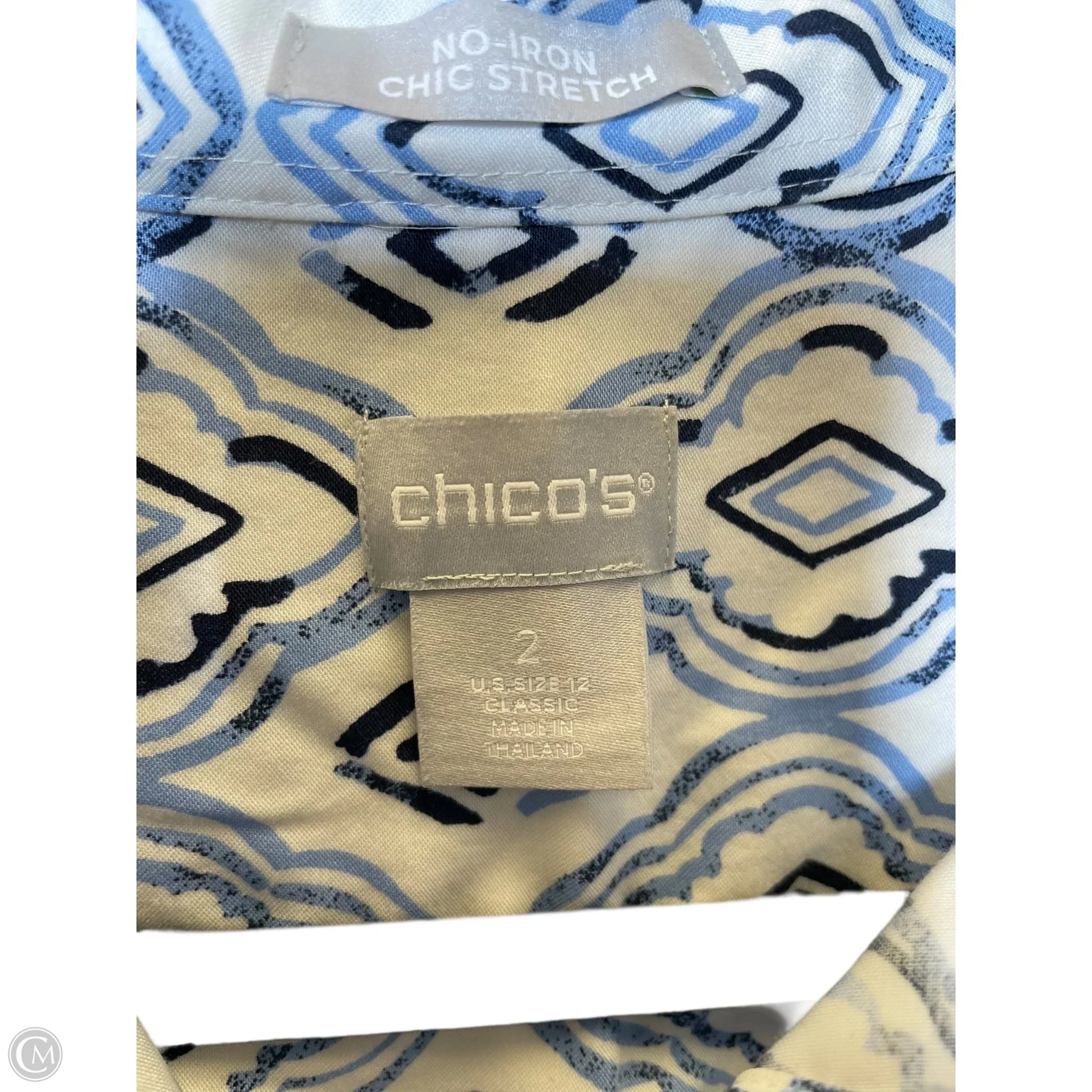 Blouse Long Sleeve By Chicos In Blue & White, Size: L