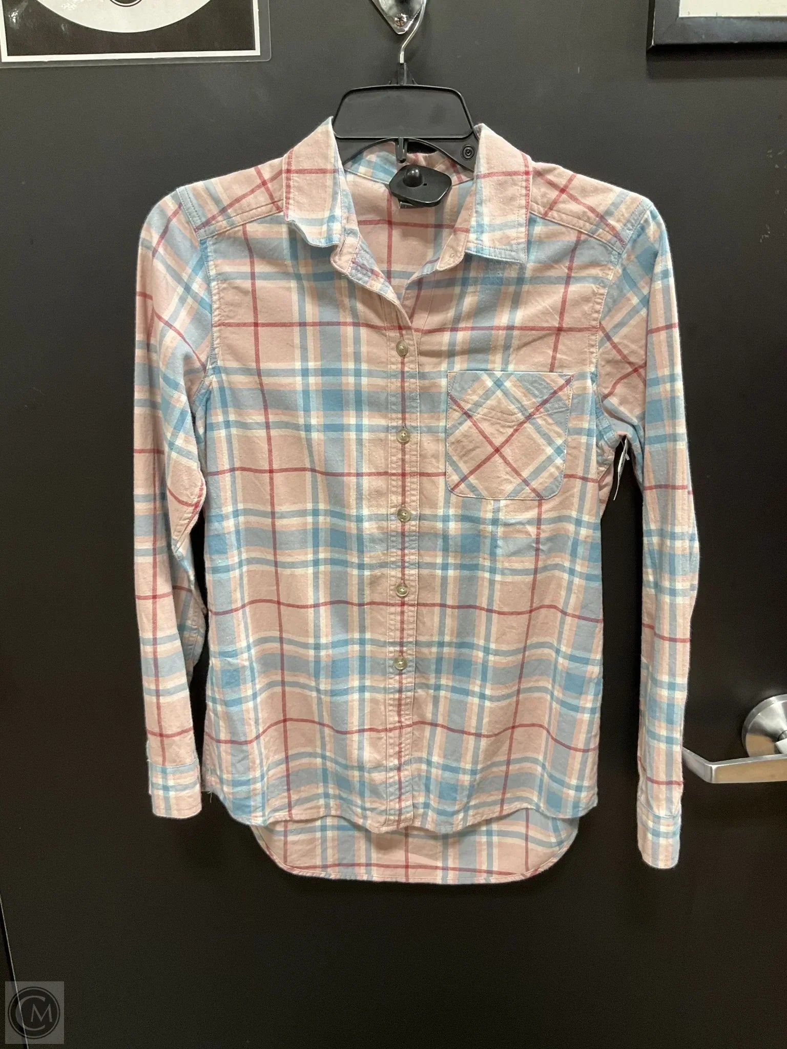 Blouse Long Sleeve By Eddie Bauer In Blue & Pink, Size: Xs