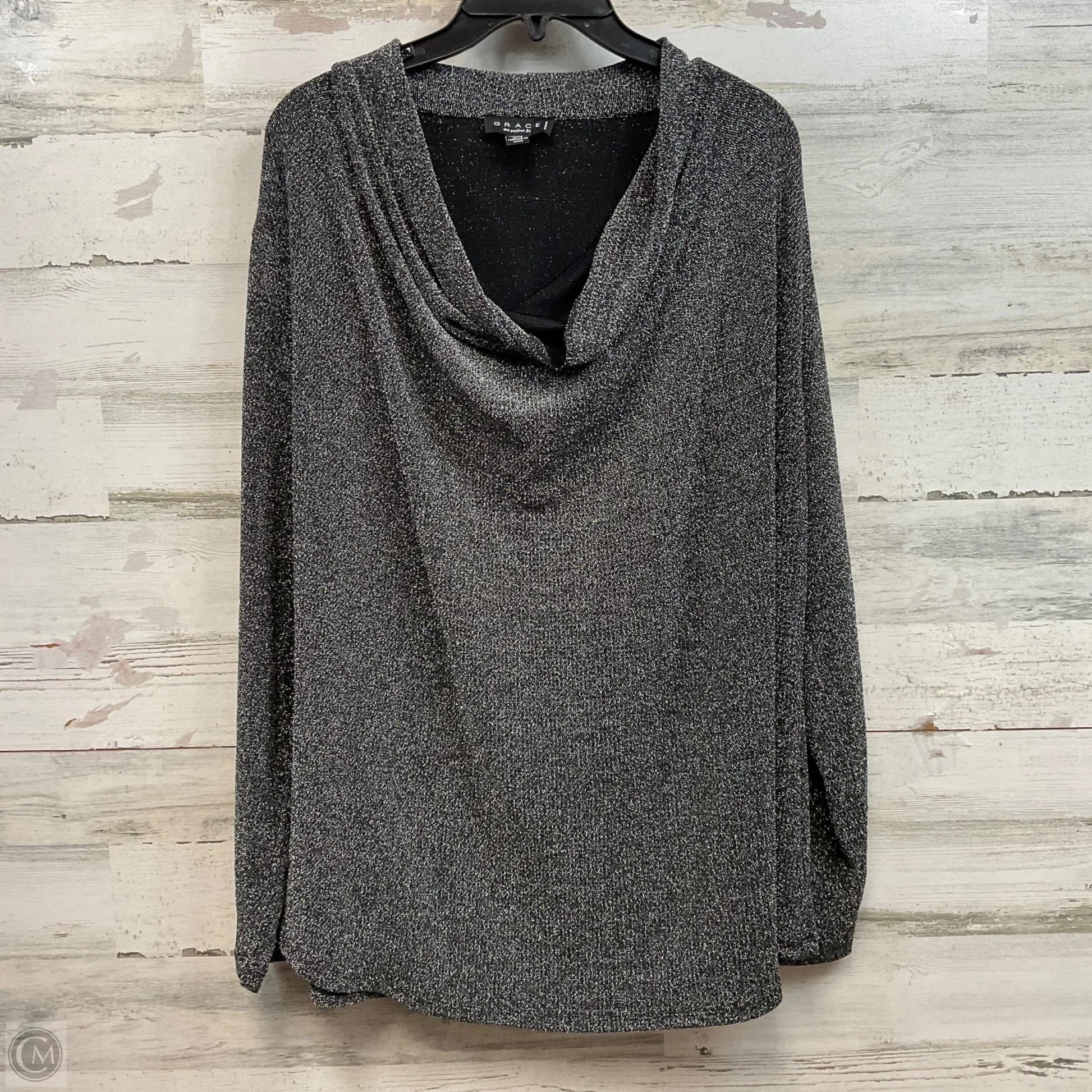 Blouse Long Sleeve By Grace In Silver, Size: 2x