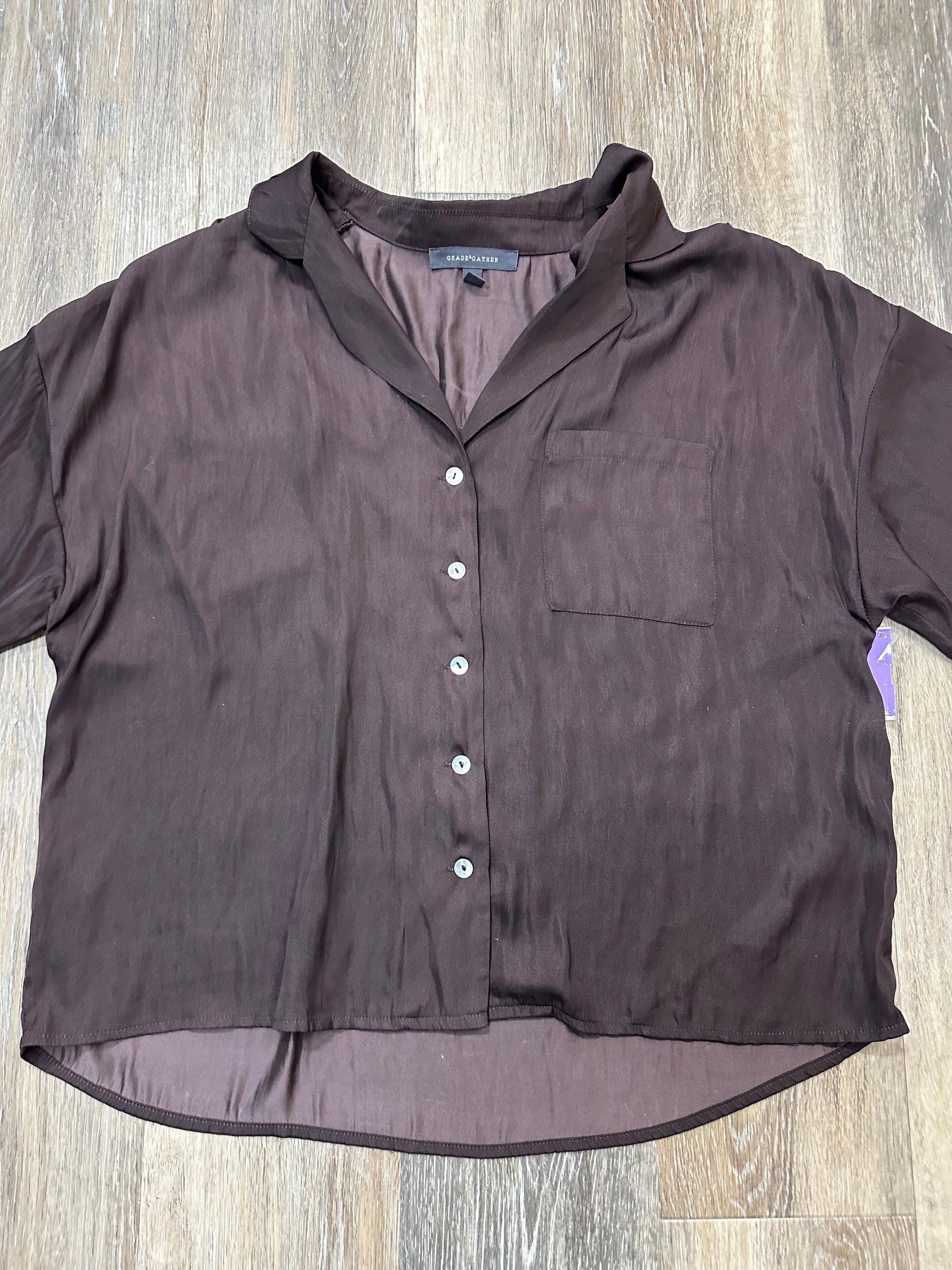 Blouse Long Sleeve By Grade & Gather In Brown, Size: M