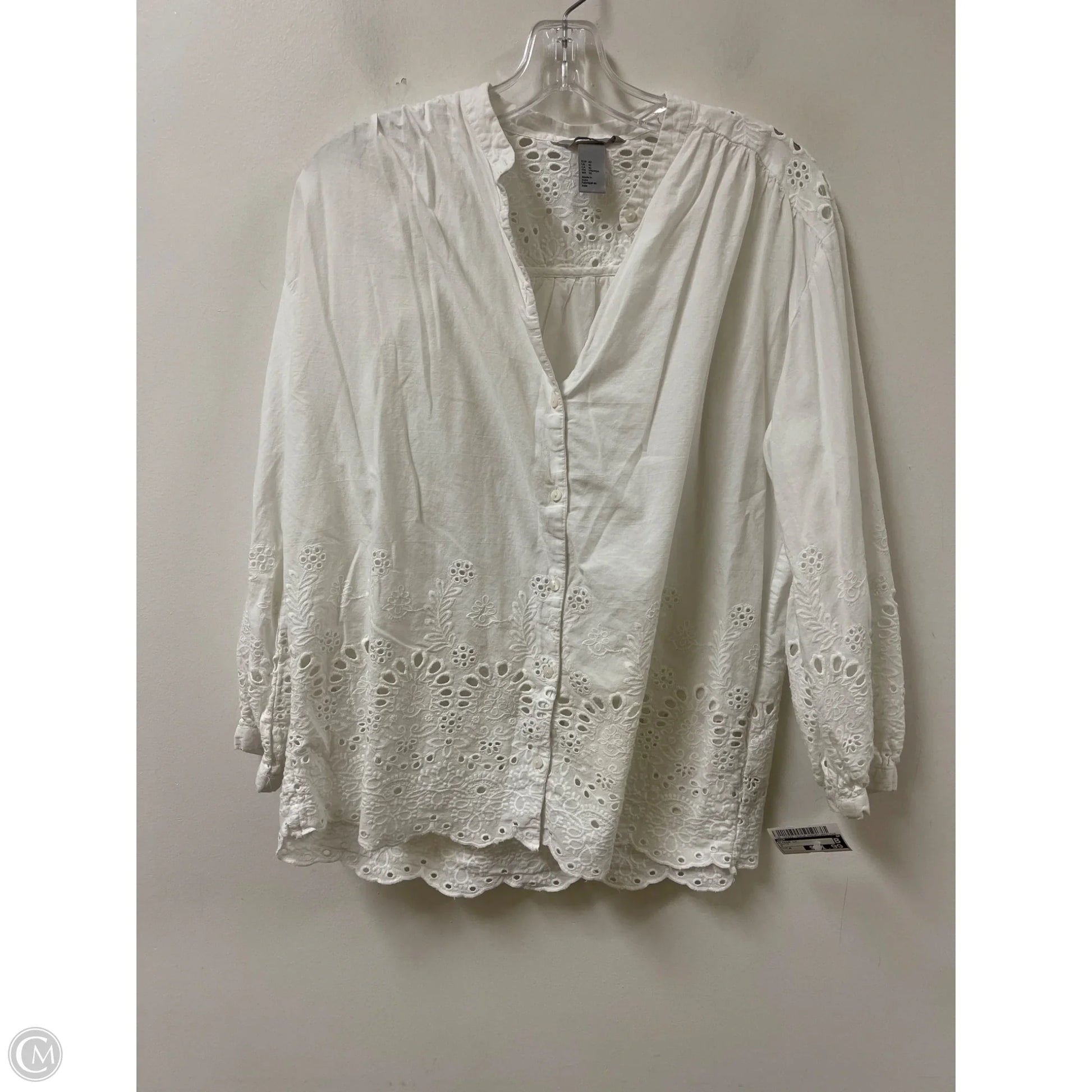 Blouse Long Sleeve By H&m In White, Size: M