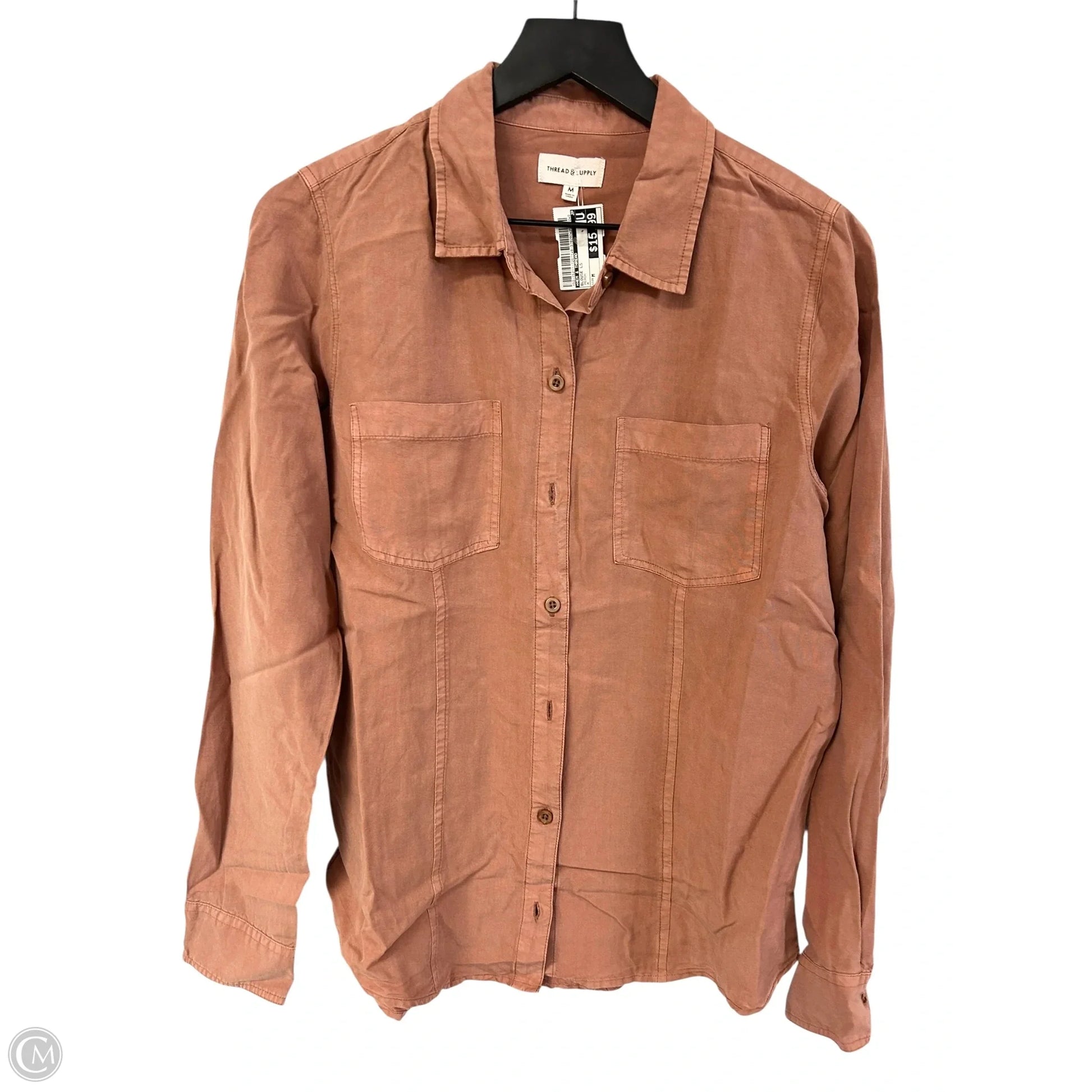 Blouse Long Sleeve By Hem & Thread In Peach, Size: M