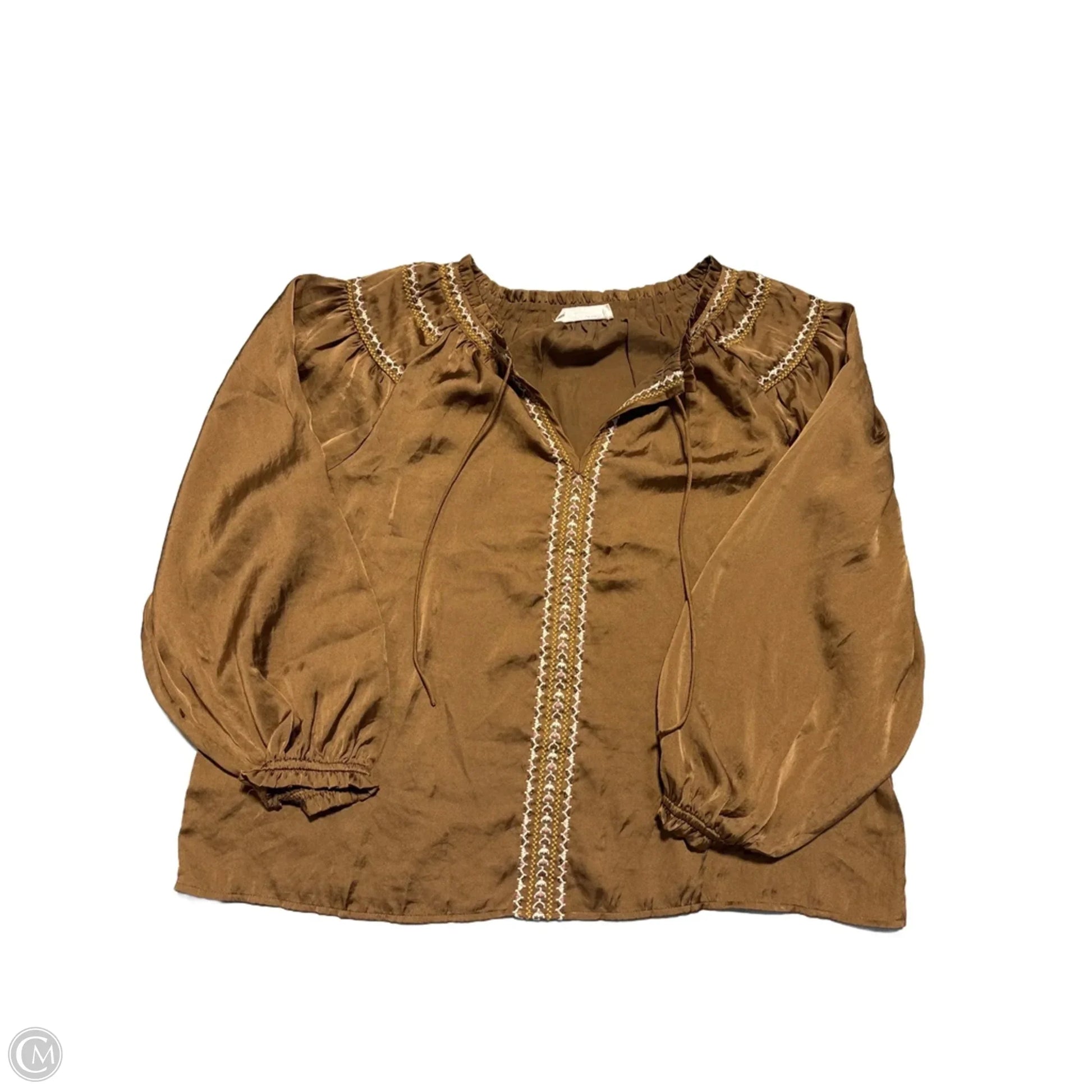 Blouse Long Sleeve By Lucky Brand In Bronze, Size: M