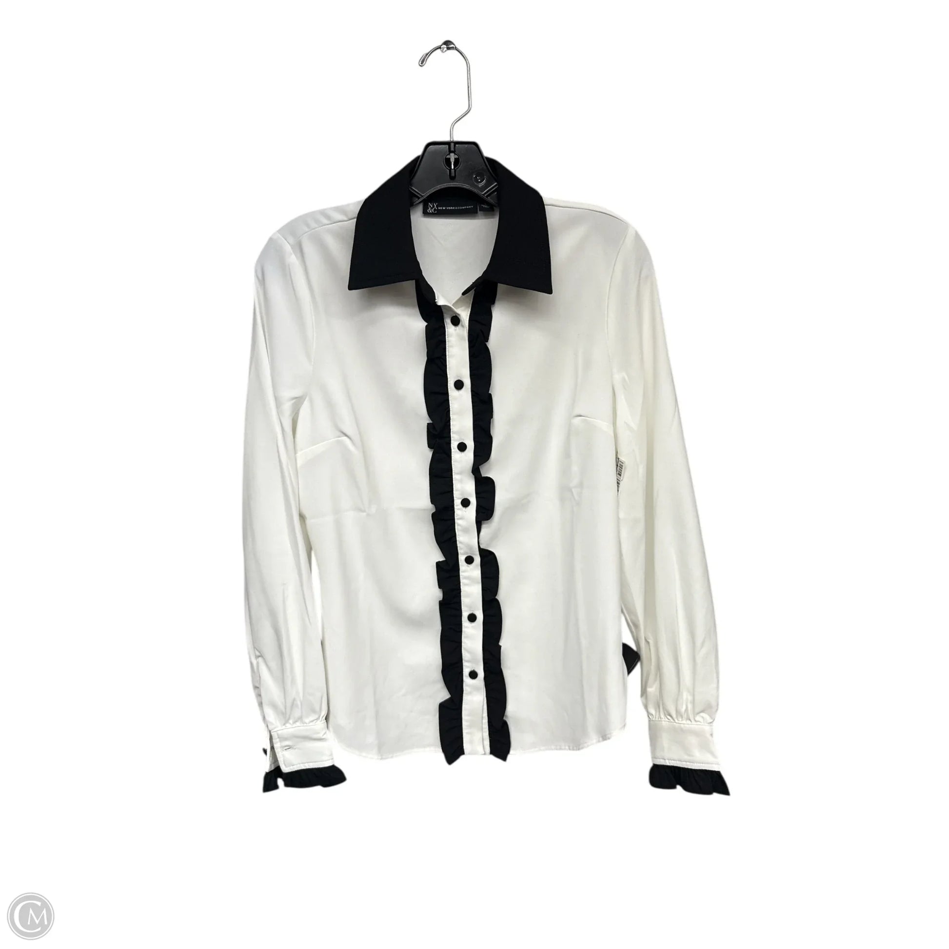 Blouse Long Sleeve By New York And Co In Black & White, Size: S