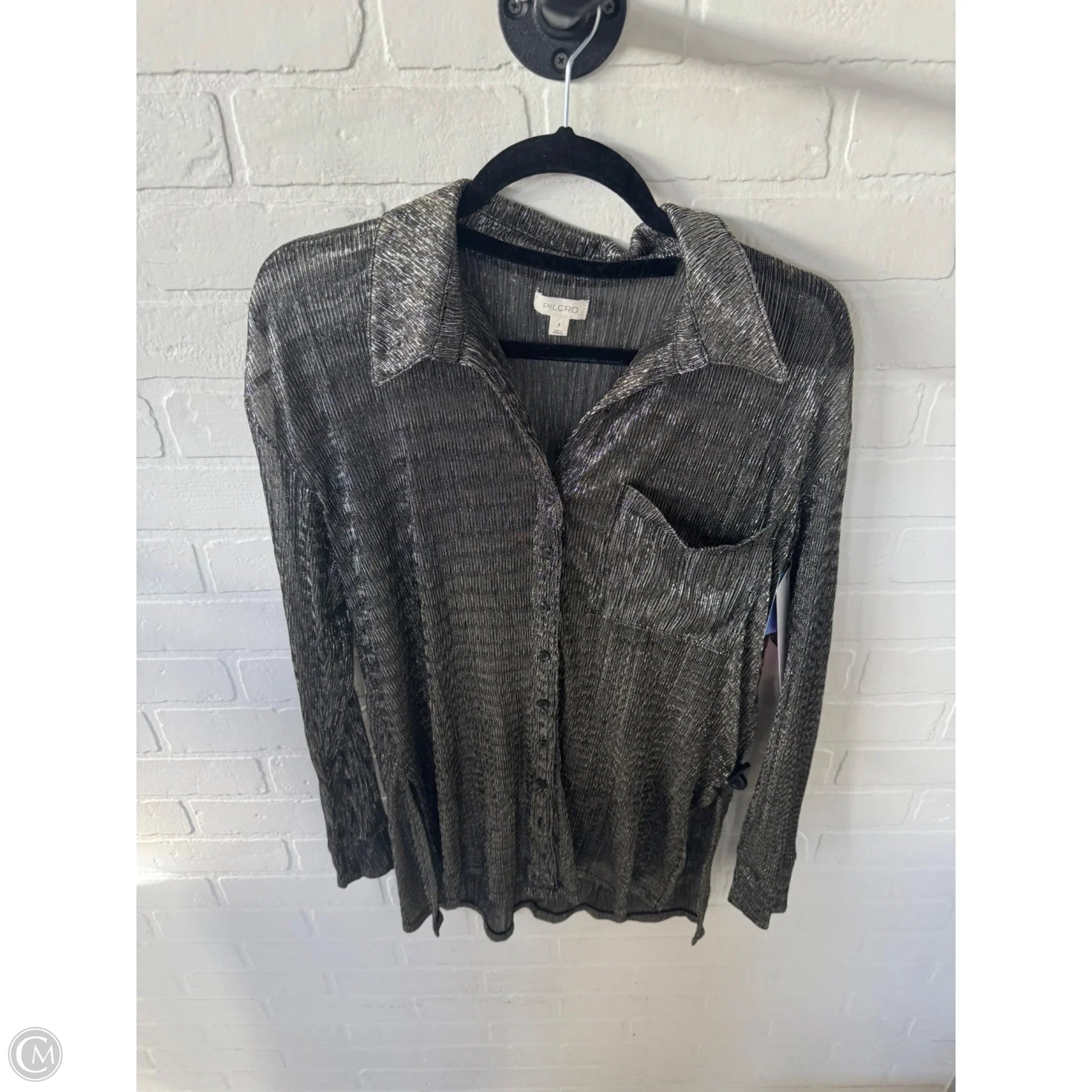 Blouse Long Sleeve By Pilcro In Silver, Size: S
