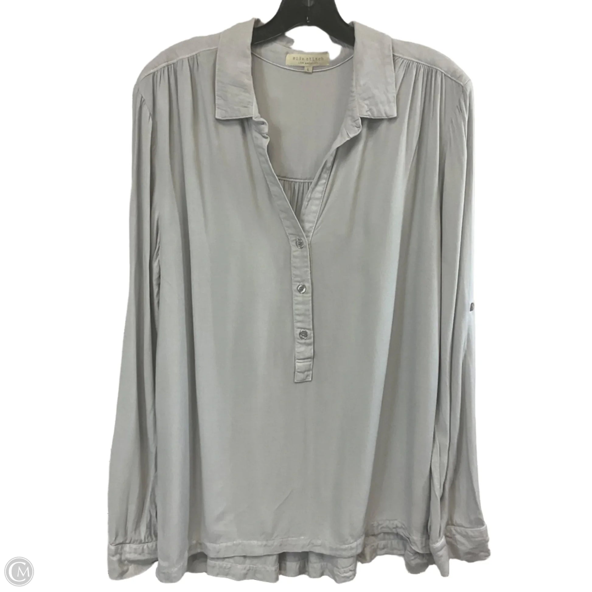 Blouse Long Sleeve By SIDE STITCH In Grey, Size: L