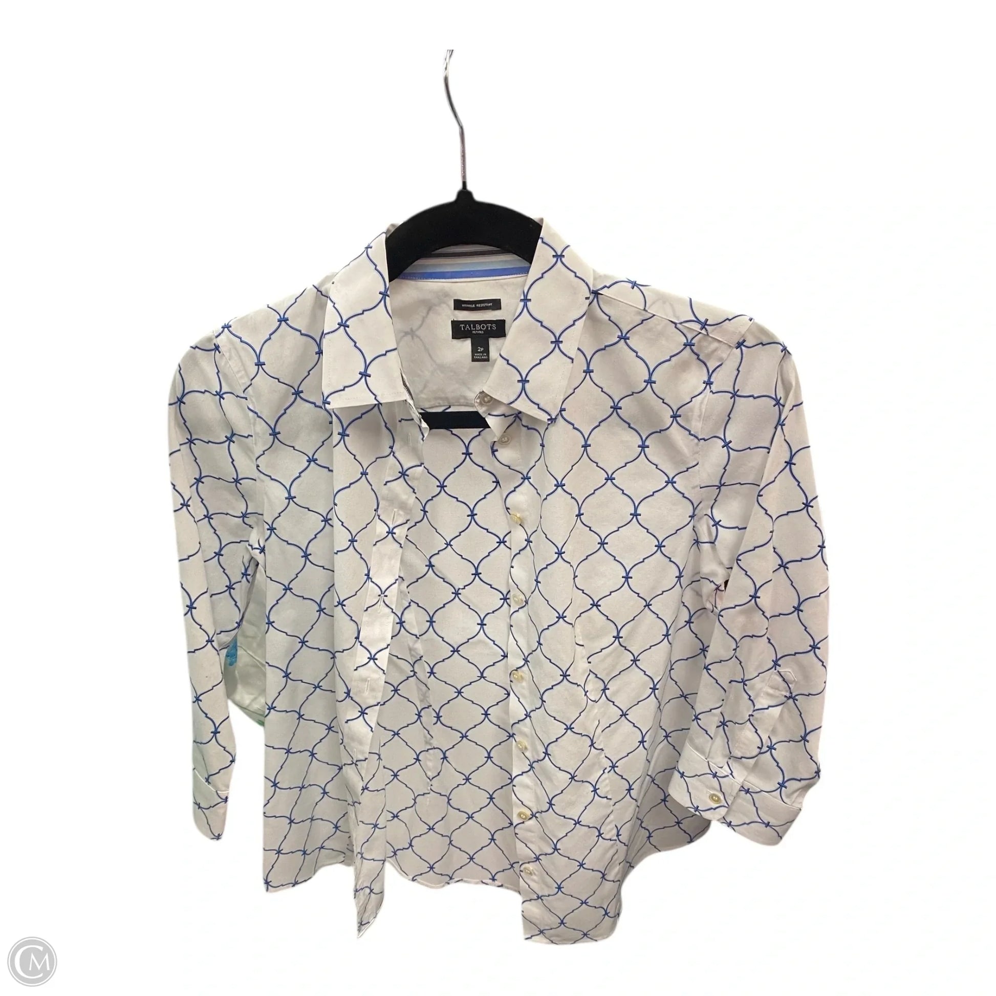Blouse Long Sleeve By Talbots In Blue & White, Size: 2p