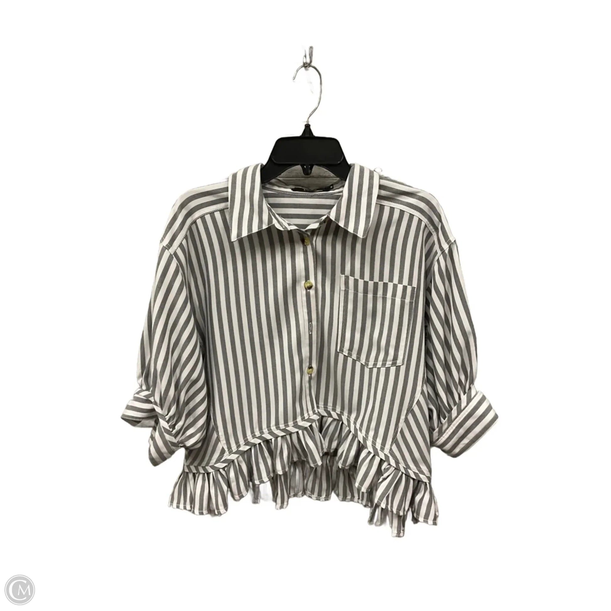 Blouse Short Sleeve By Cmc In Striped Pattern, Size: M