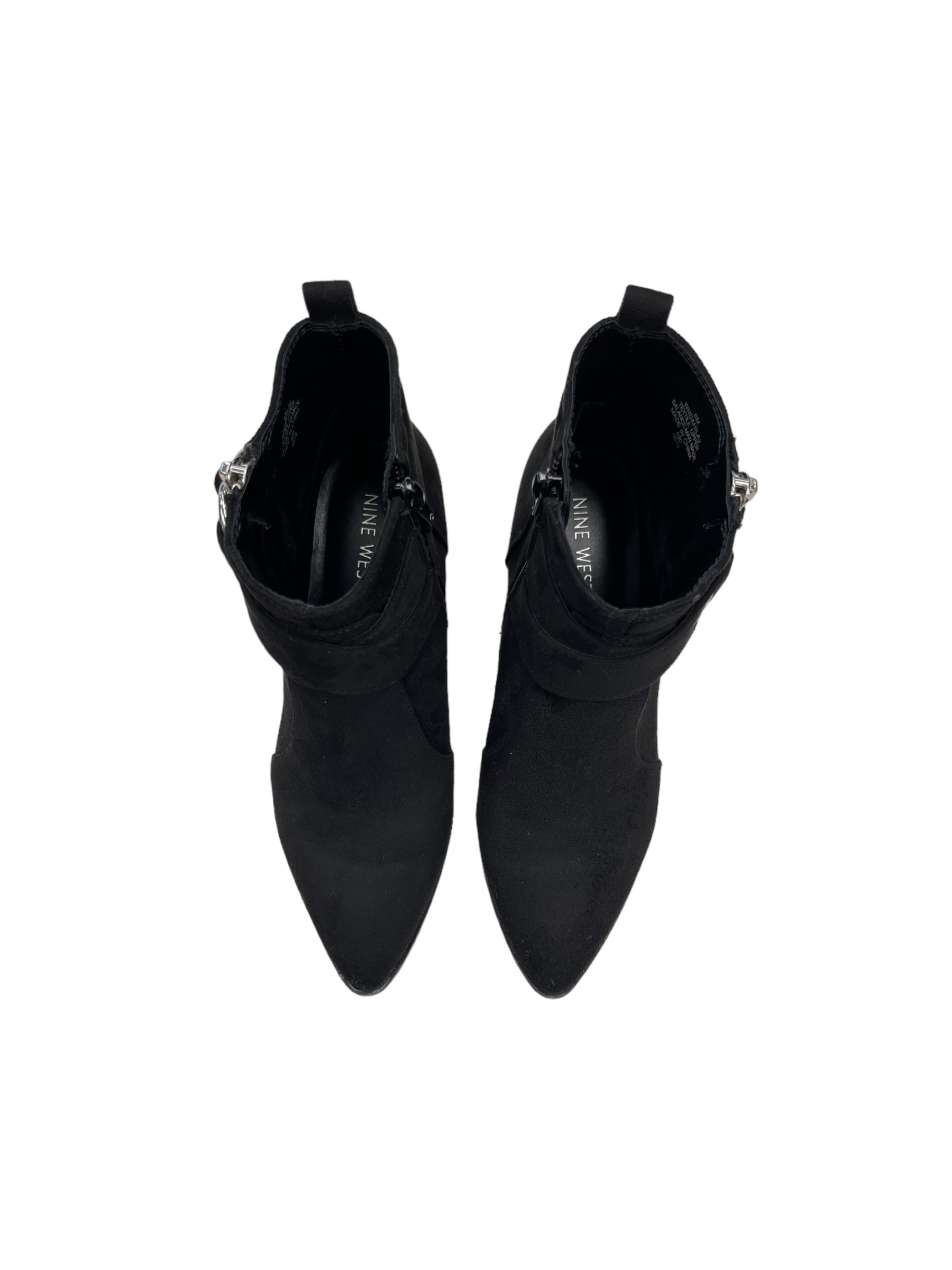 Boots Ankle Heels By Nine West In Black & Silver, Size: 6