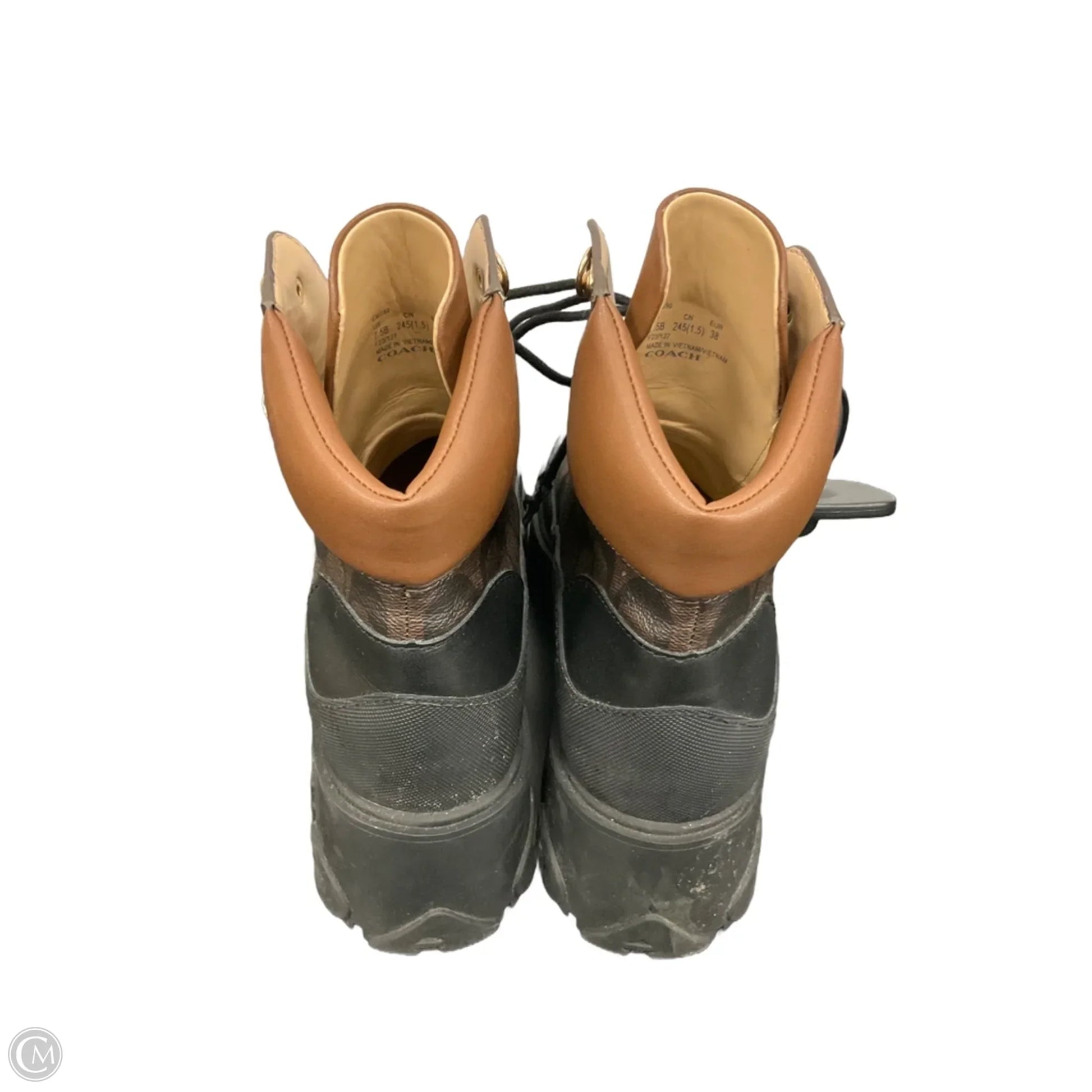 Boots Designer By Coach In Black & Brown, Size: 7.5