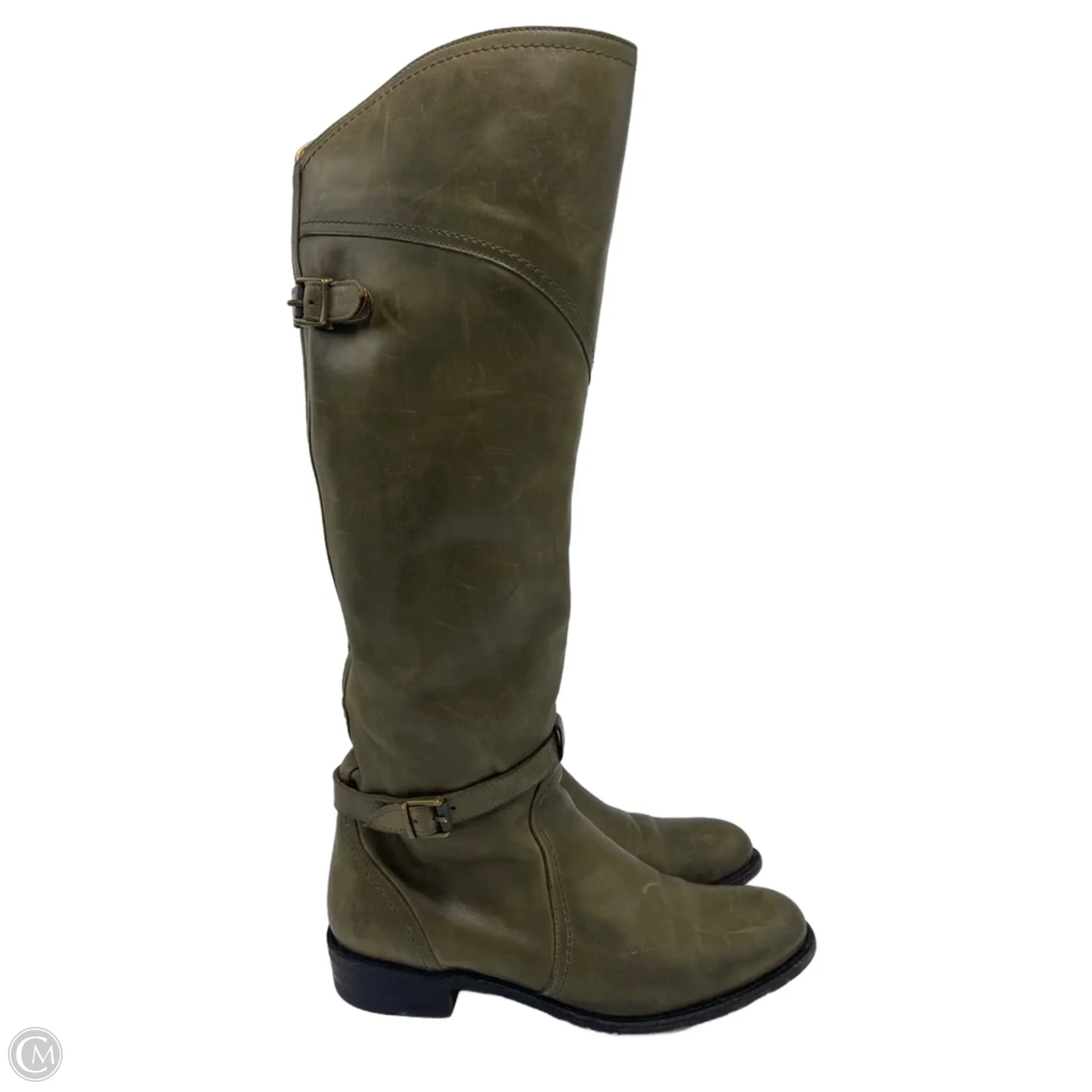 Frye Dorado Riding Designer Boots In Olive Green, Size: 8