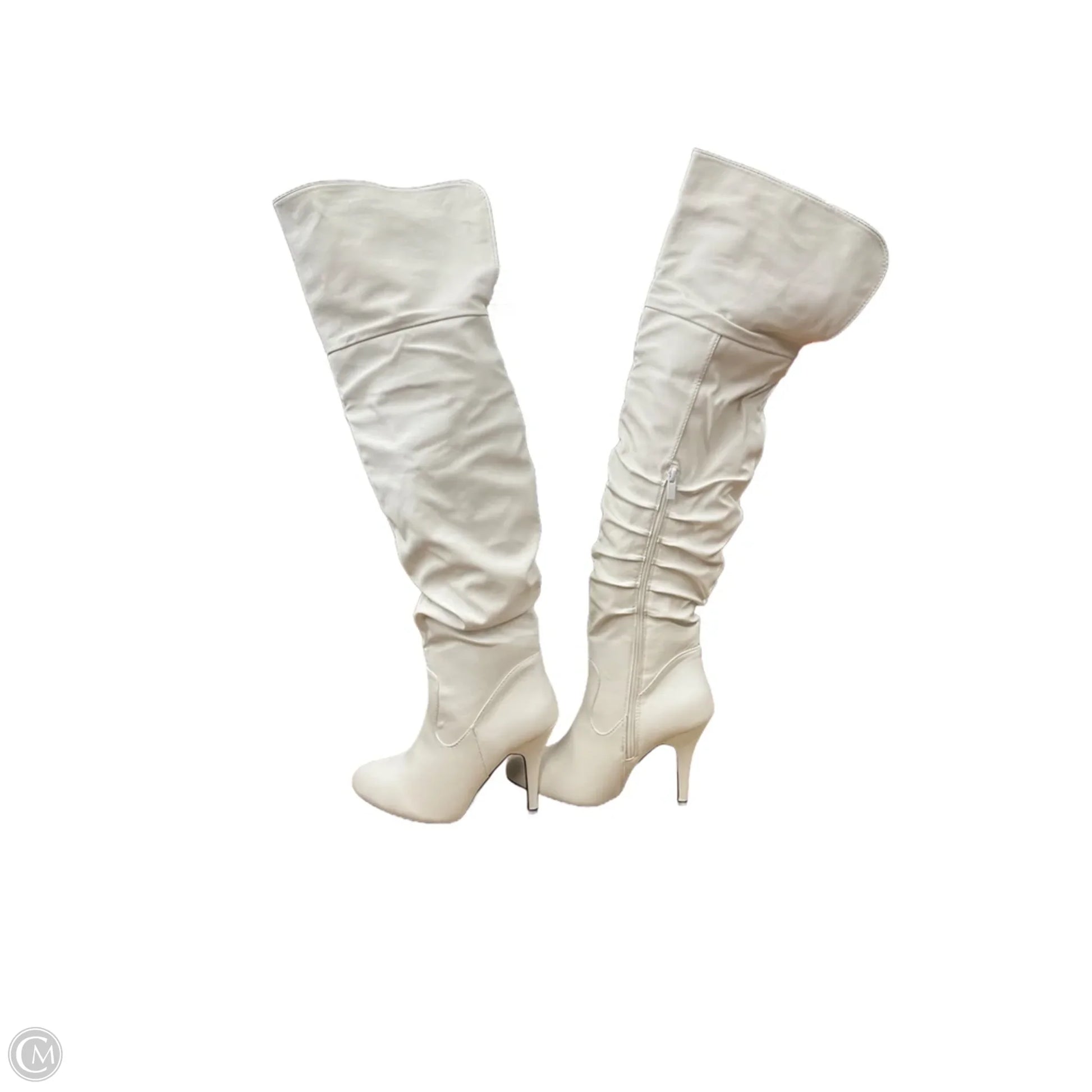 Boots Knee Heels By Forever In White, Size: 8