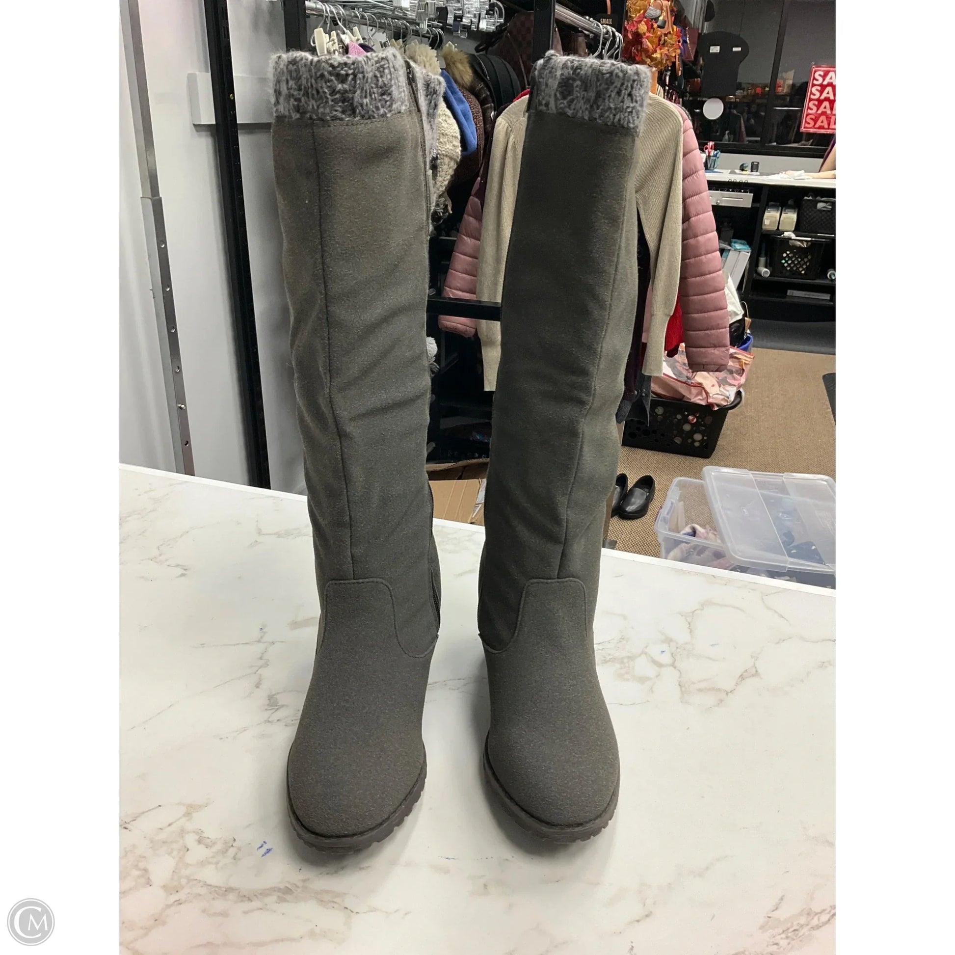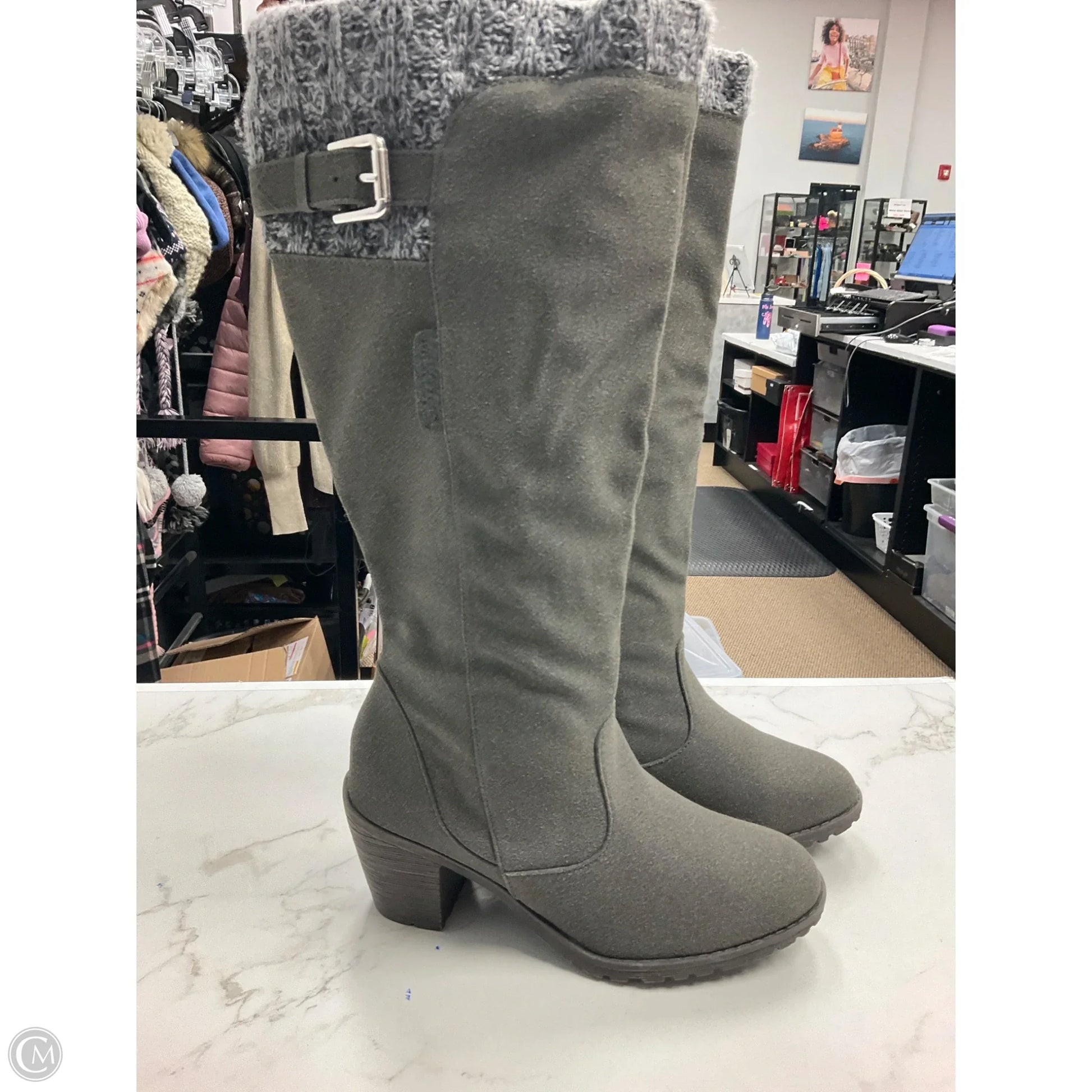Boots Knee Heels By Muk Luks In Grey, Size: 8