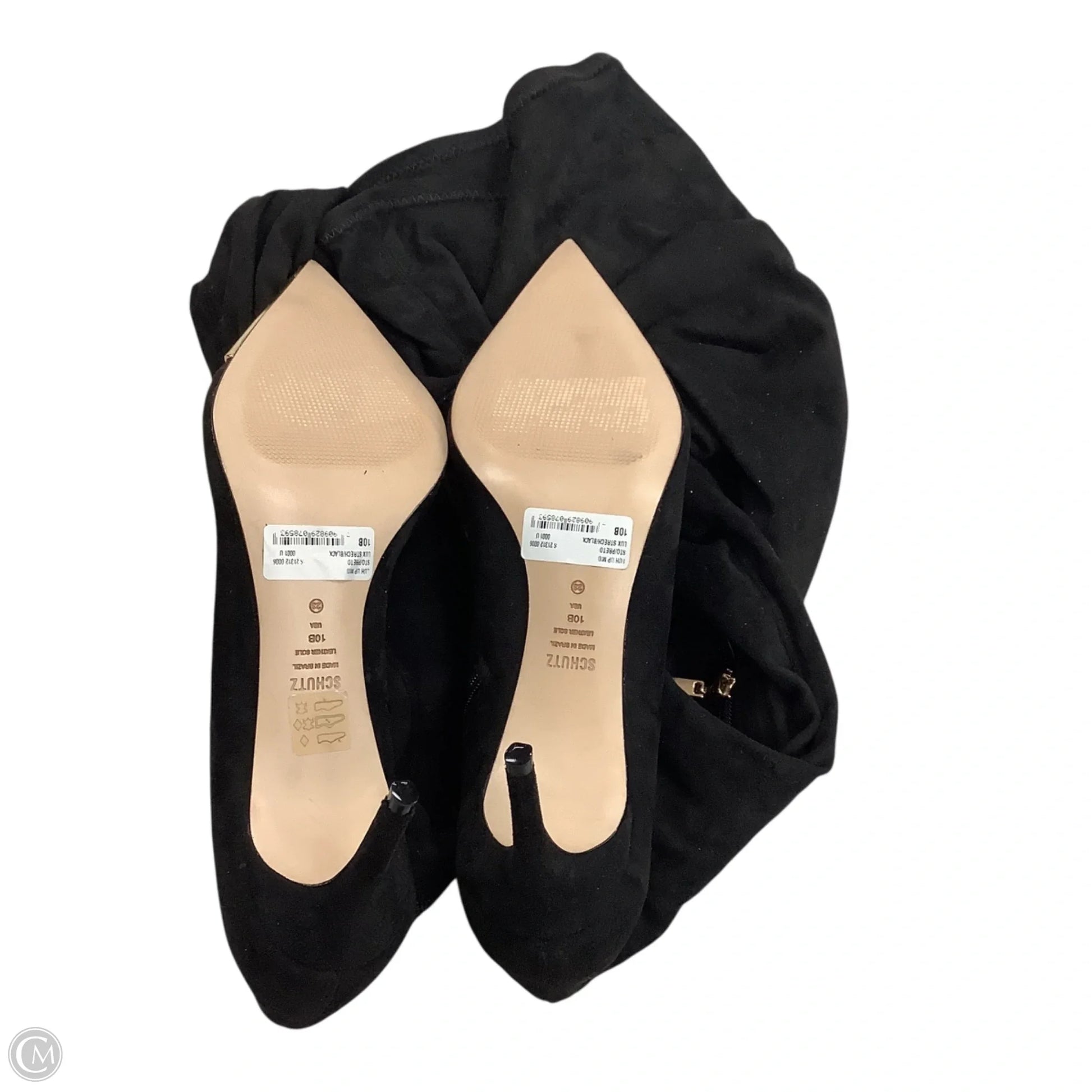 Boots Knee Heels By Schutz In Black & Gold, Size: 10