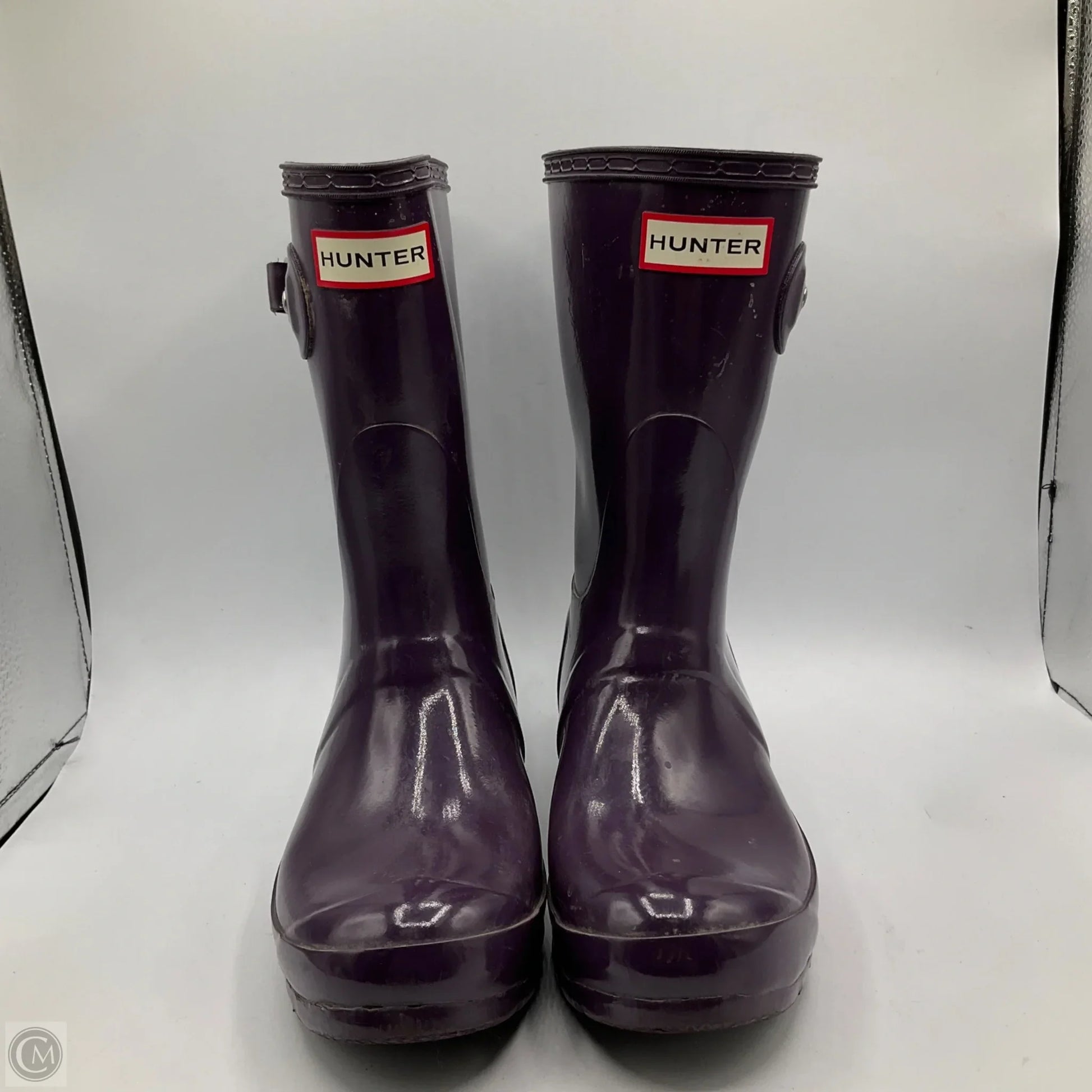 Embrace rainy days in style with Purple Hunter Rain Boots, Size 6.