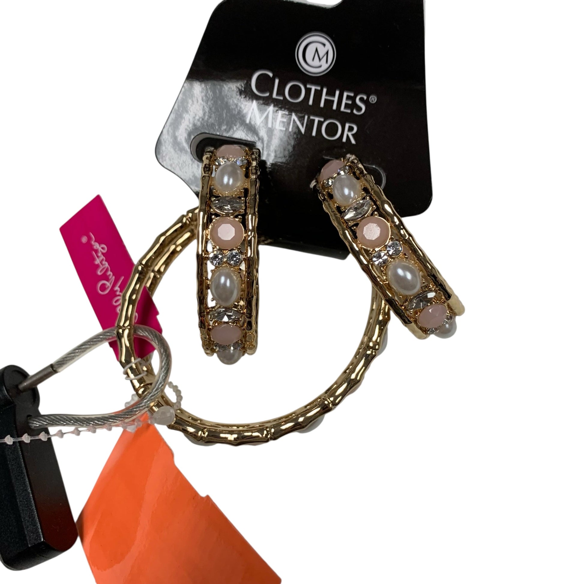 Other Info: CUFF & HOOP EARRING - PINK/PEARL GEMS