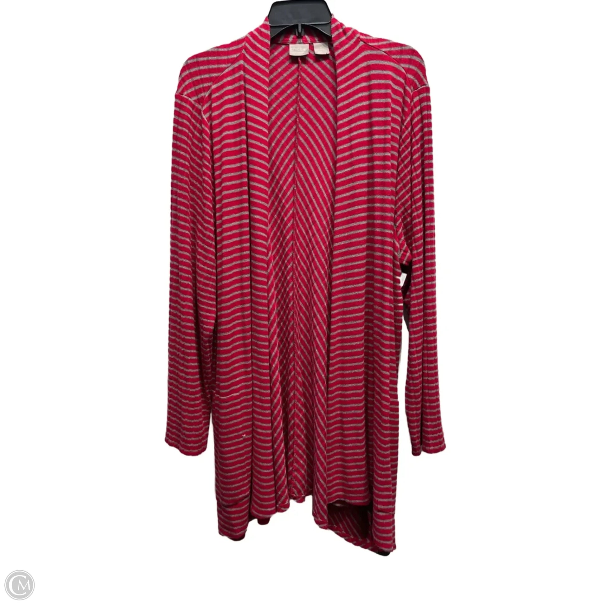 Cardigan By Chicos In Grey & Red, Size: 1x