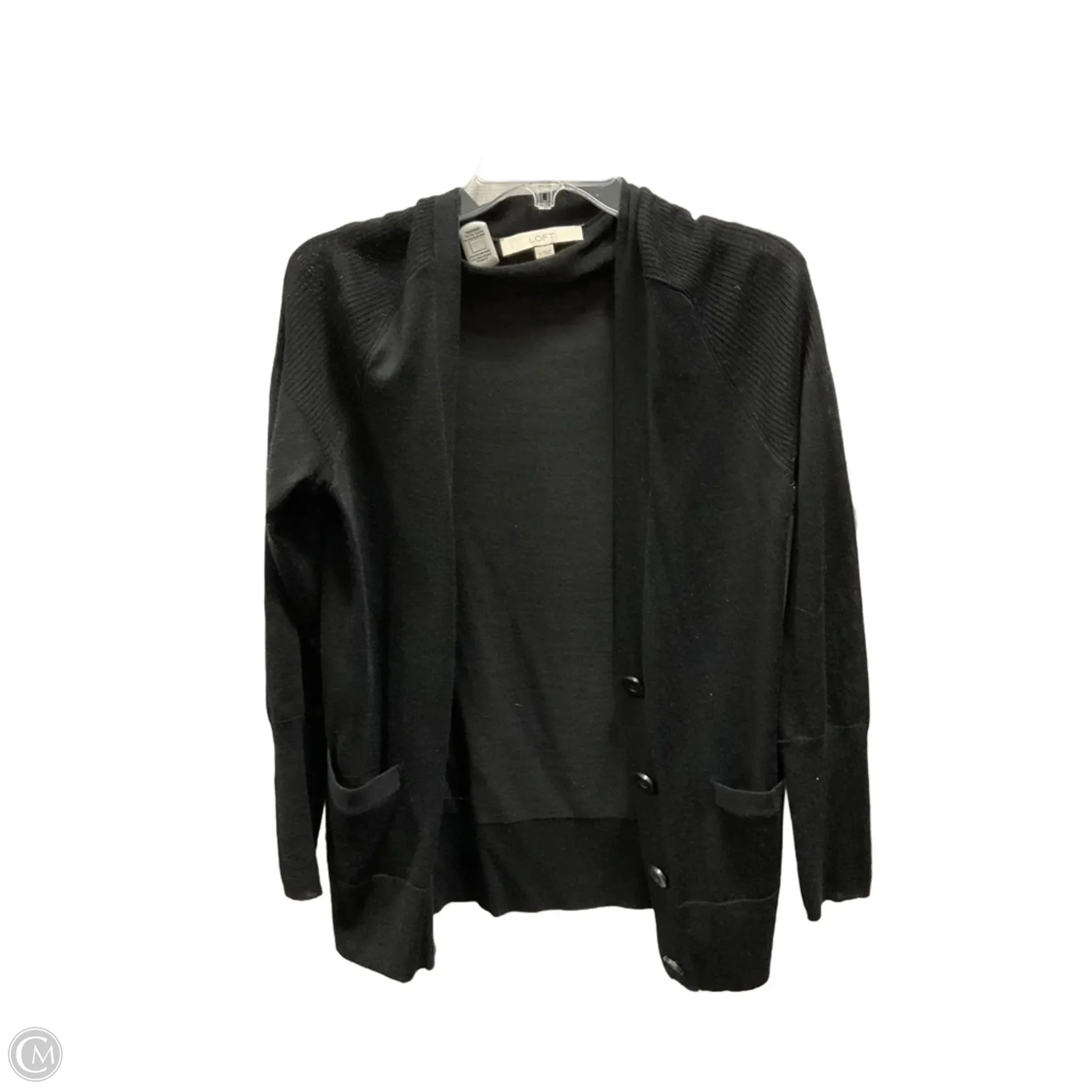 Wrap yourself in luxury with this chic black cardigan from Loft in size M. Crafted with premium fabric for a perfect fit, adding sophistication to any outfit.