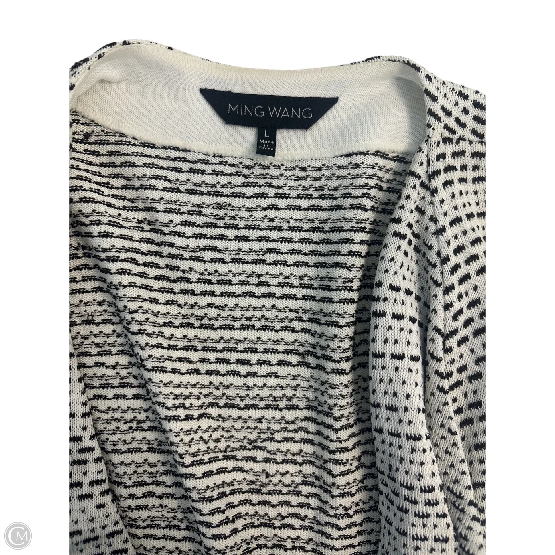 Indulge in timeless elegance with this Ming Wang black & white cardigan in size L. Elevate your outfit effortlessly.
