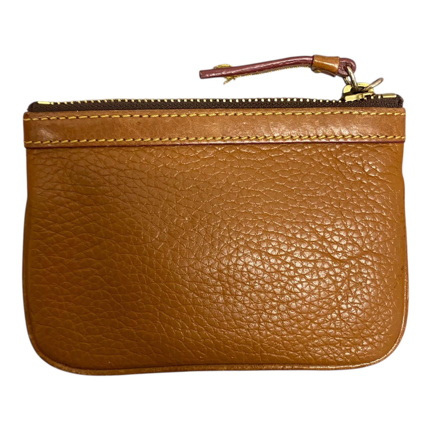 Stylish brown Dooney & Bourke coin purse, small size, designer elegance.