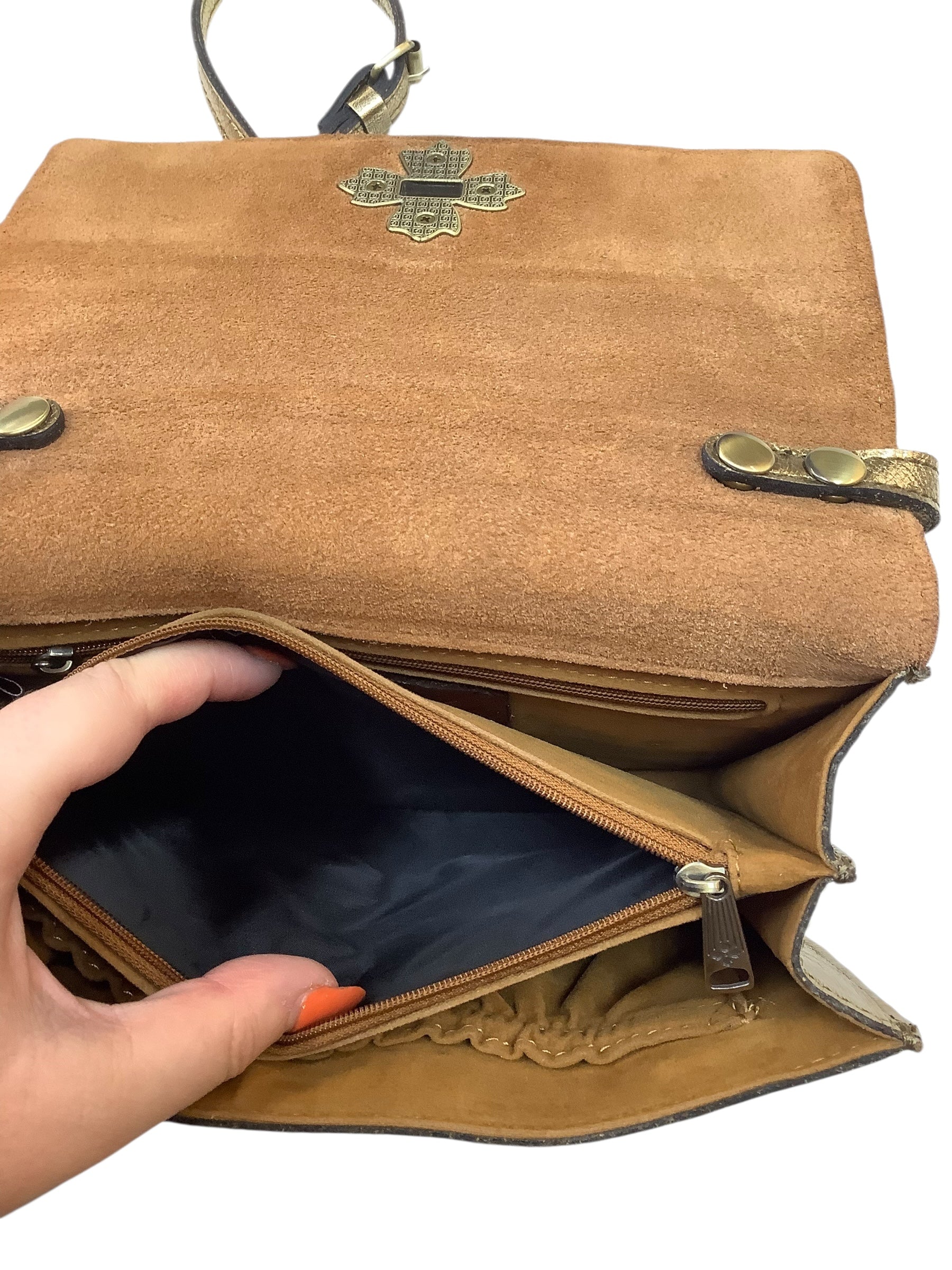Crossbody Designer By Patricia Nash In Gold, Size:Medium