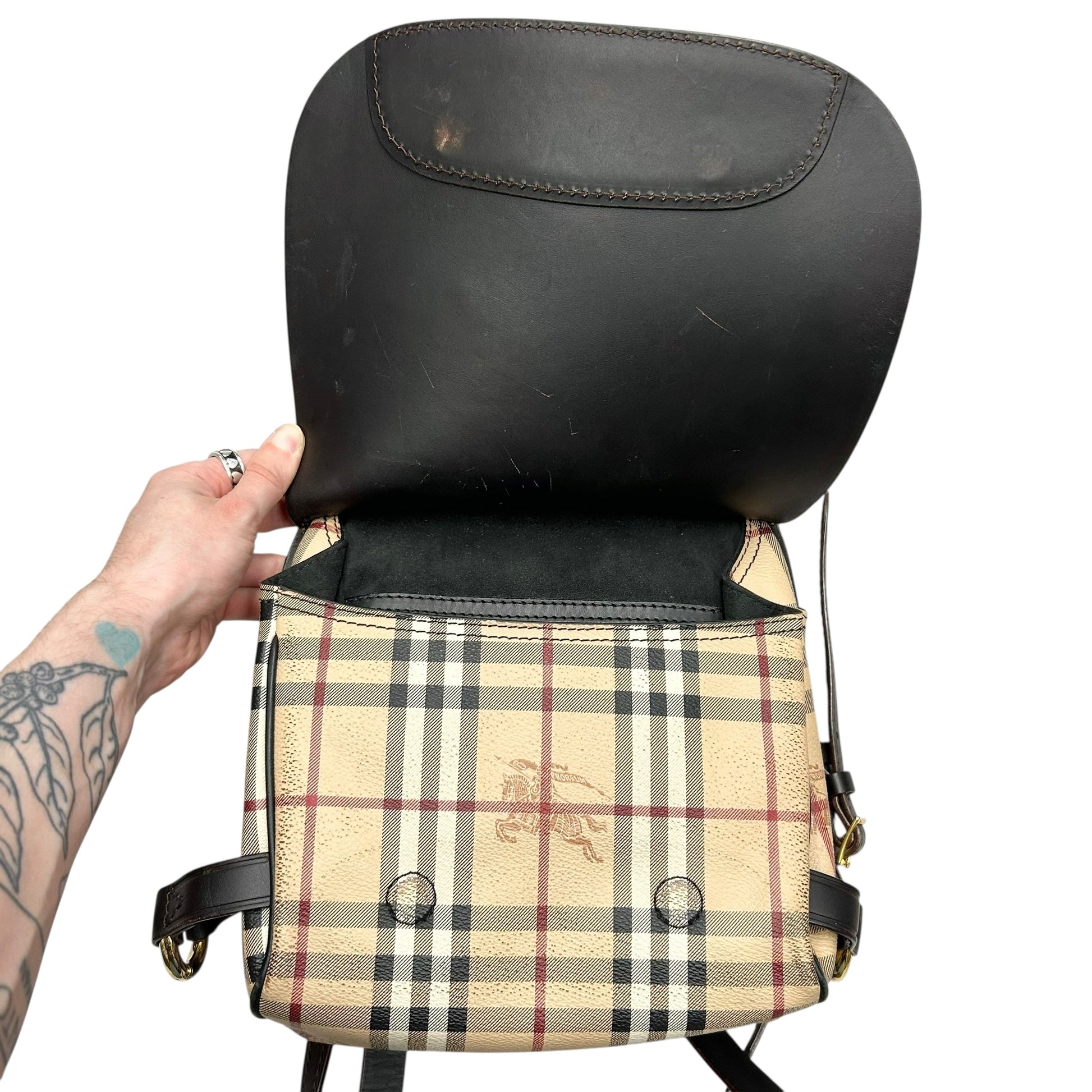 Indulge in the opulent charm of this medium-sized Burberry designer crossbody, exuding luxury with its exquisite craftsmanship and timeless elegance.