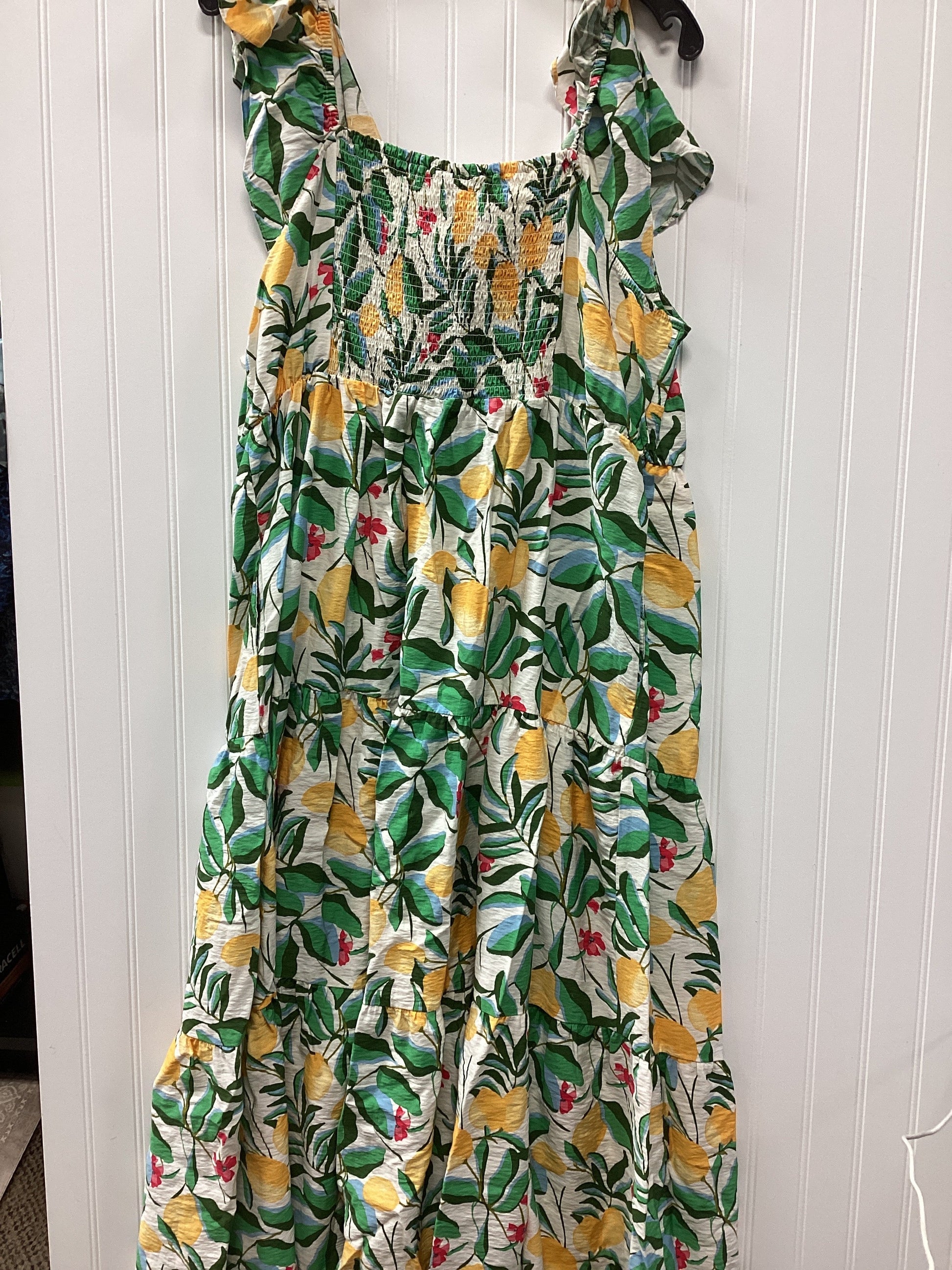 Dress Casual Midi By Ava & Viv In Green & Yellow, Size:1X
