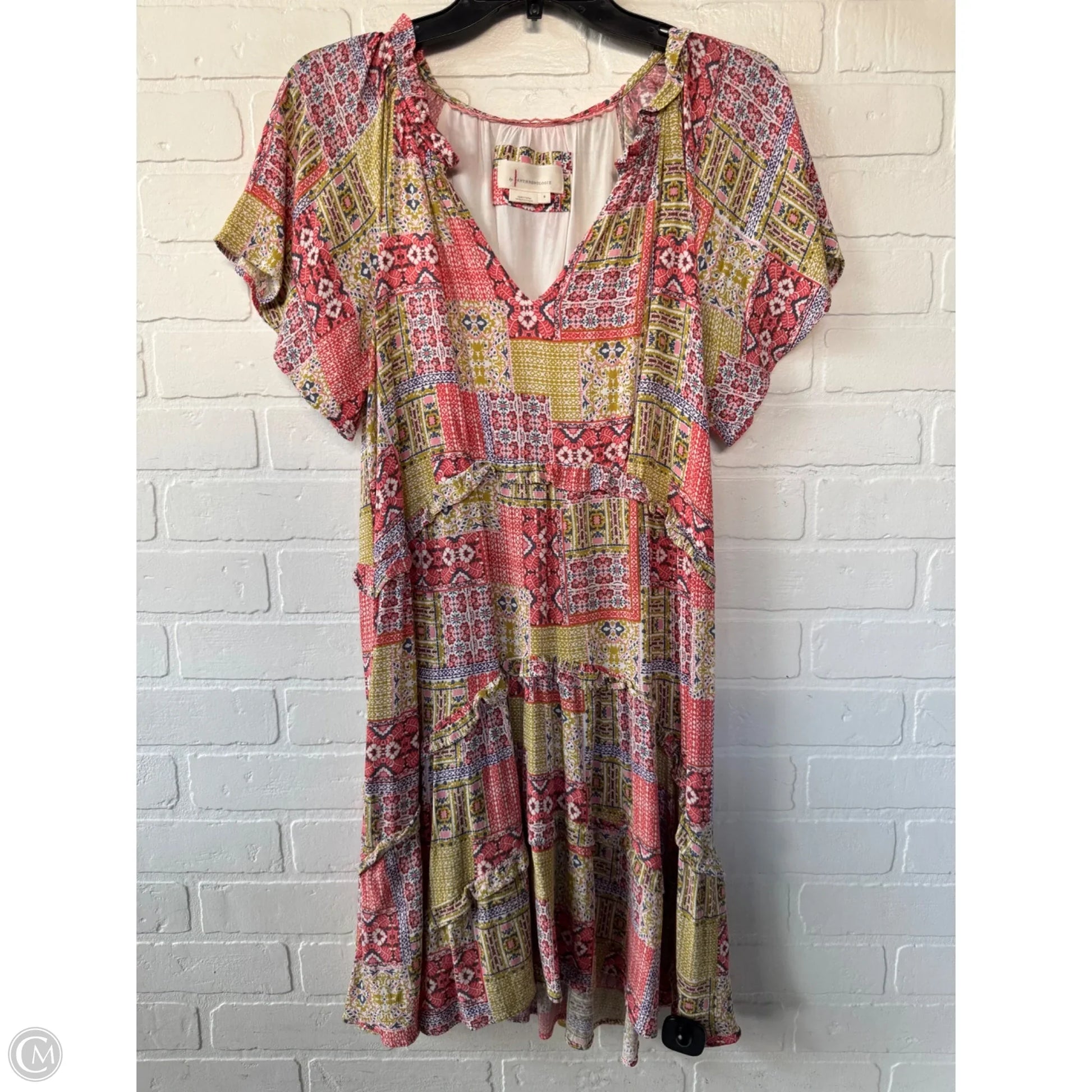 Dress Casual Short By Anthropologie In Green & Pink, Size: S