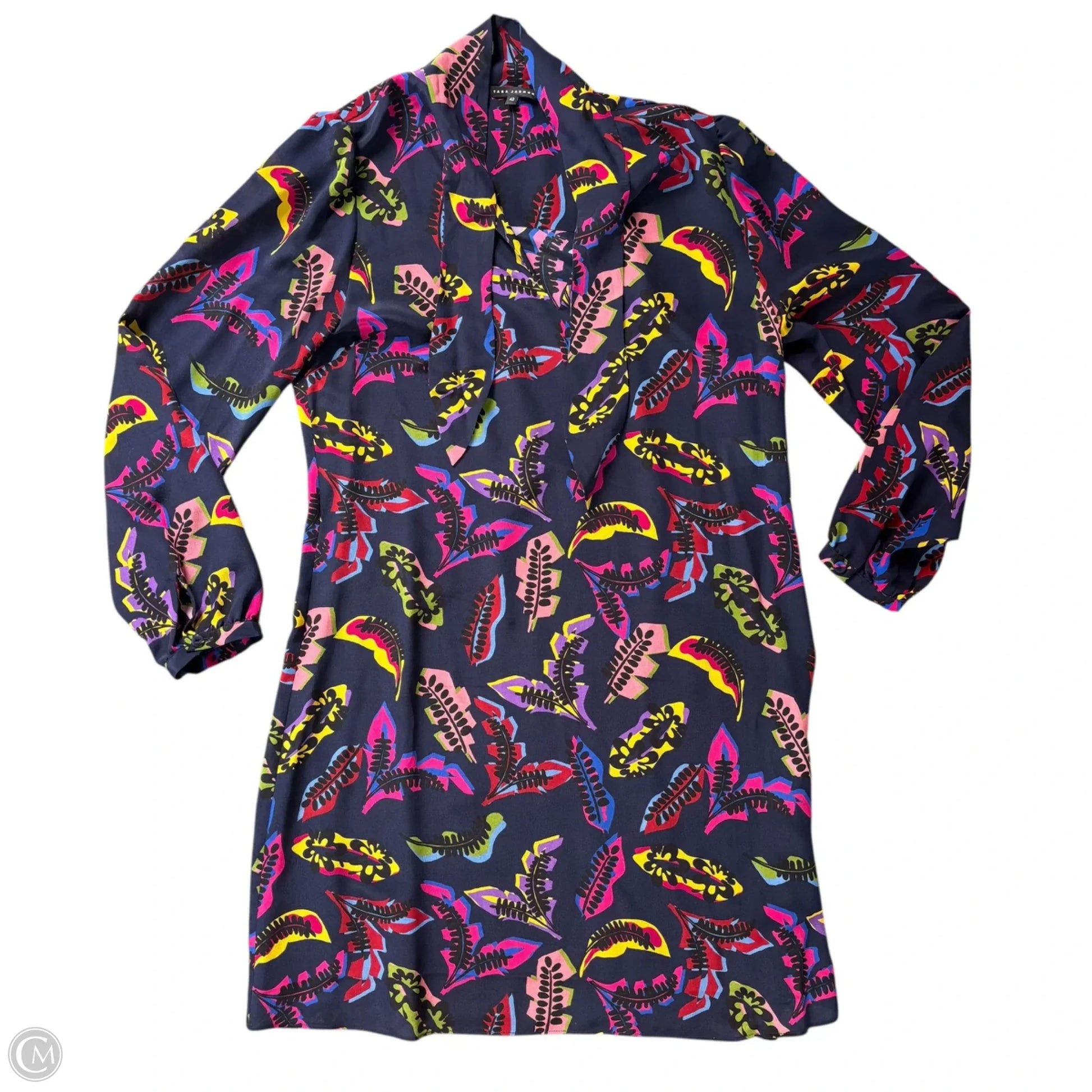 Other Info: tara jarmon - 100% SILK SIZE 42 LS NAVY PINK YELL