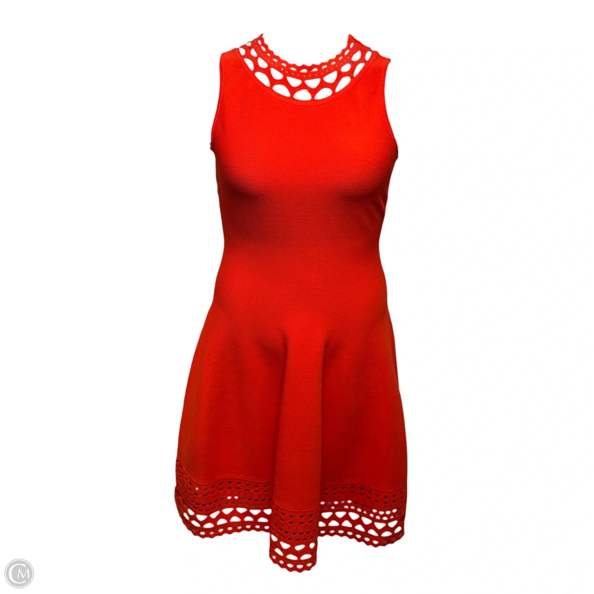 Chain Link Laser Cut Fit & Flare Dress Designer By Milly In Coral, Size: M