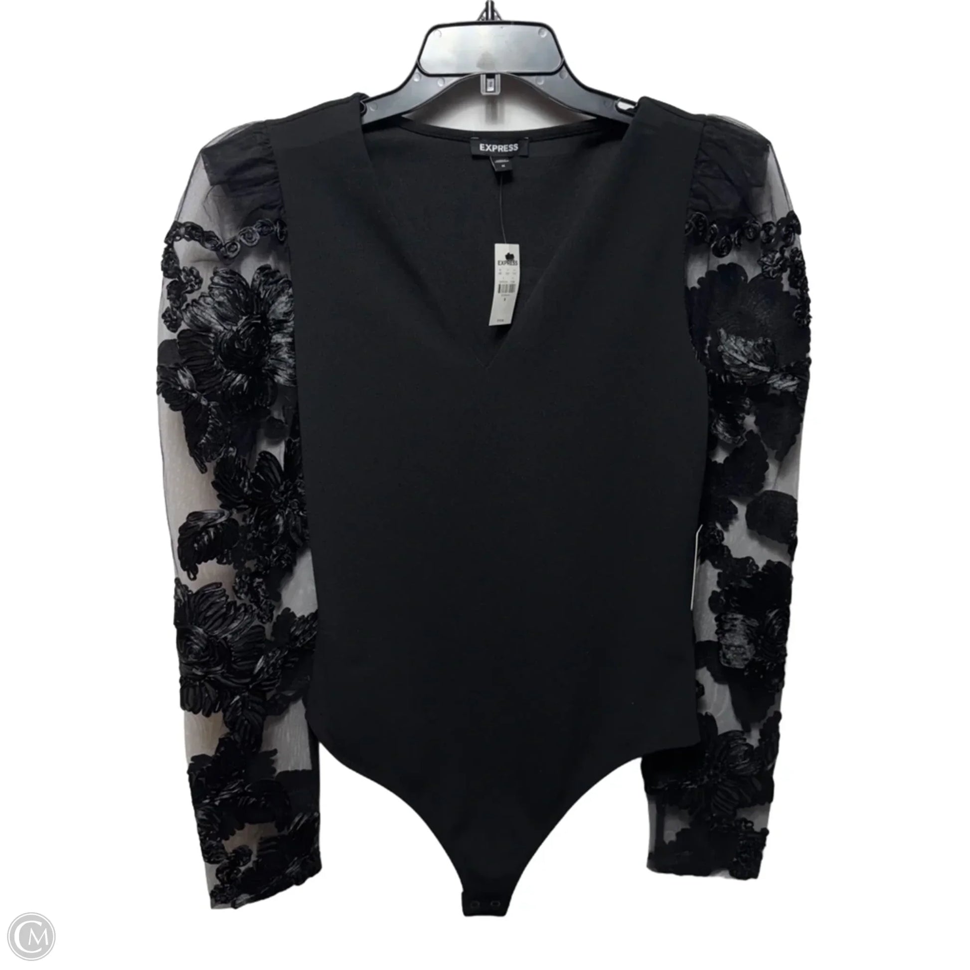 Floral Sleeve Bodysuit By Express In Black, Size: M