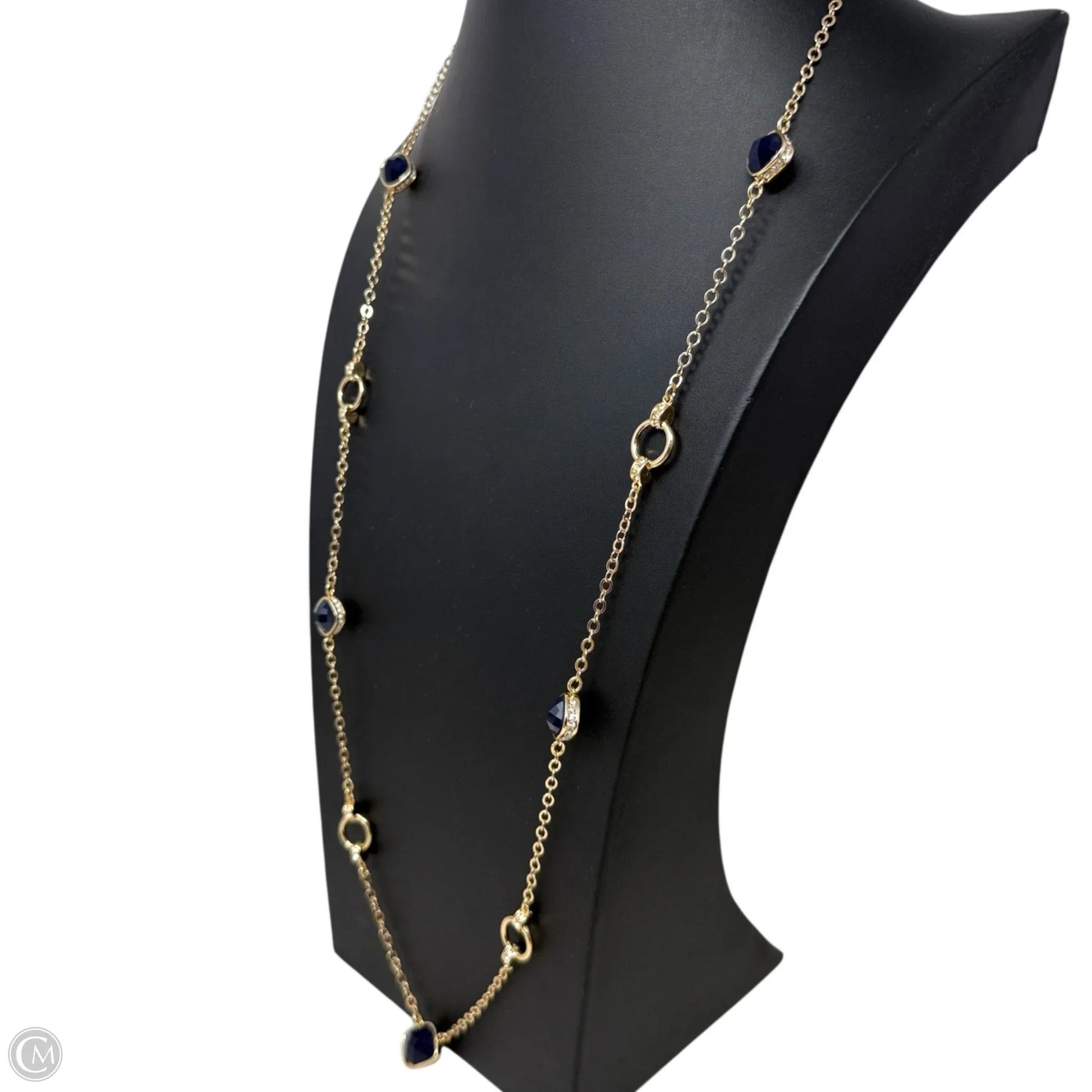 Gold Tone Blue Stone & Crystal Accent Station Necklace By Tahari