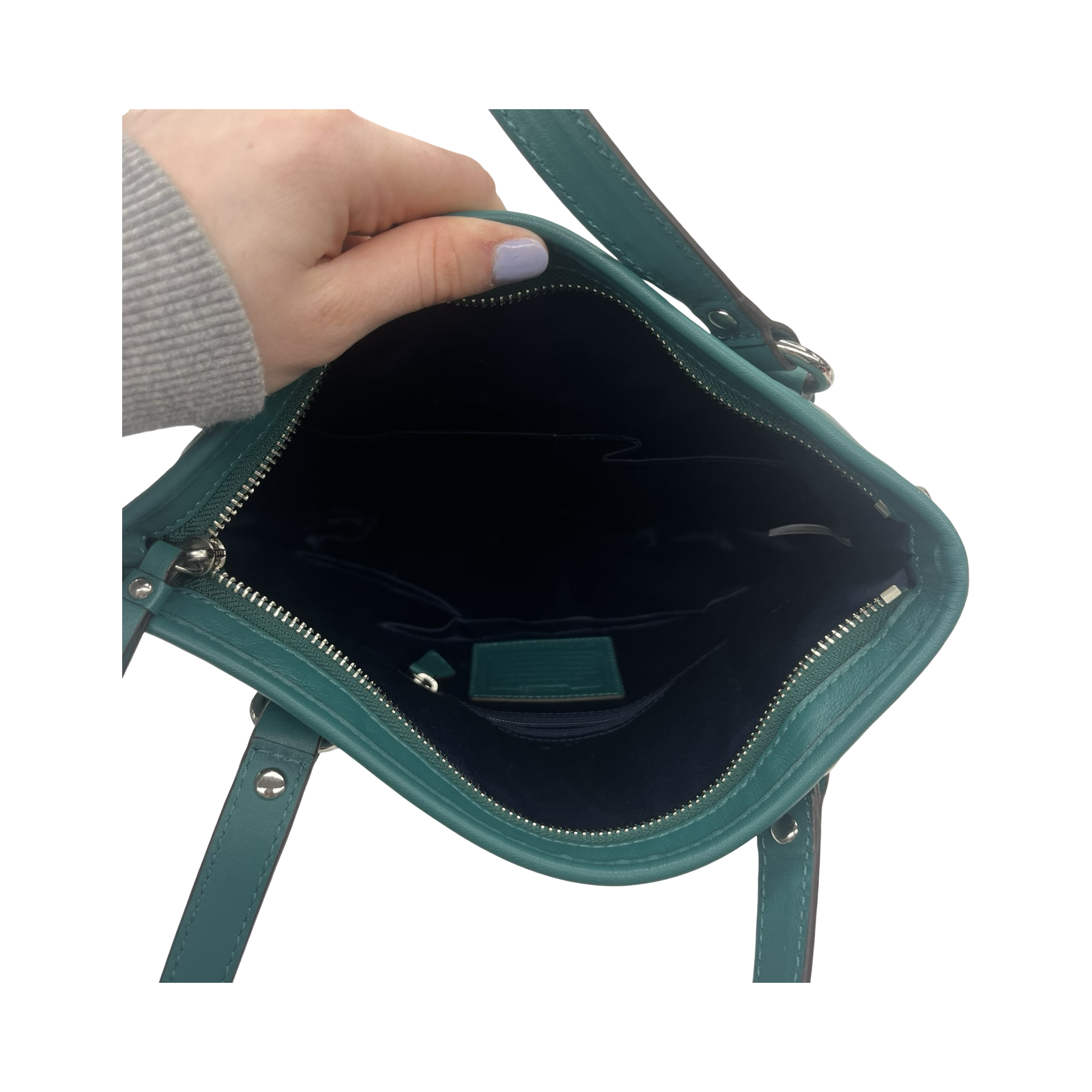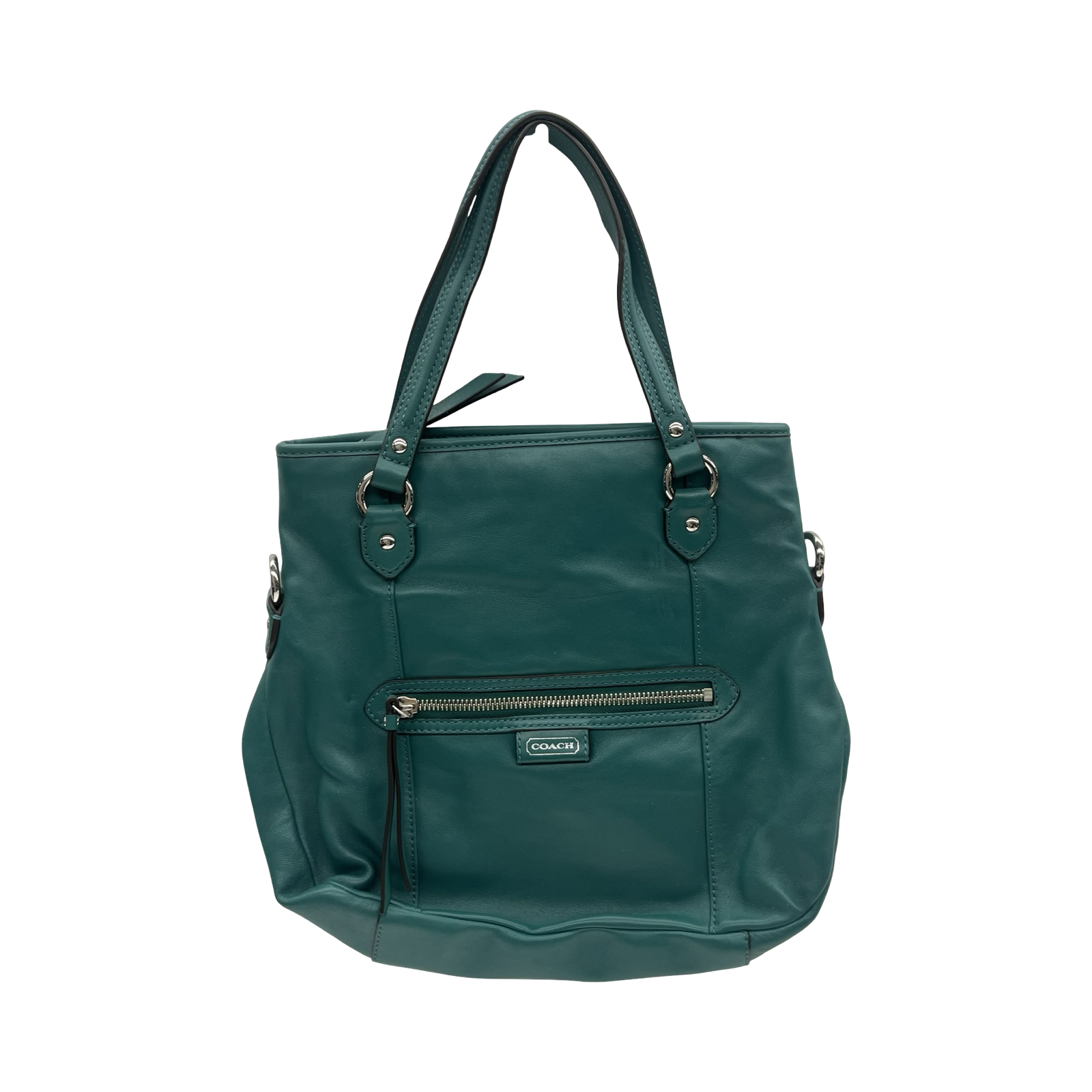 Experience timeless sophistication with this medium-sized green Coach designer handbag. Crafted for style and durability.