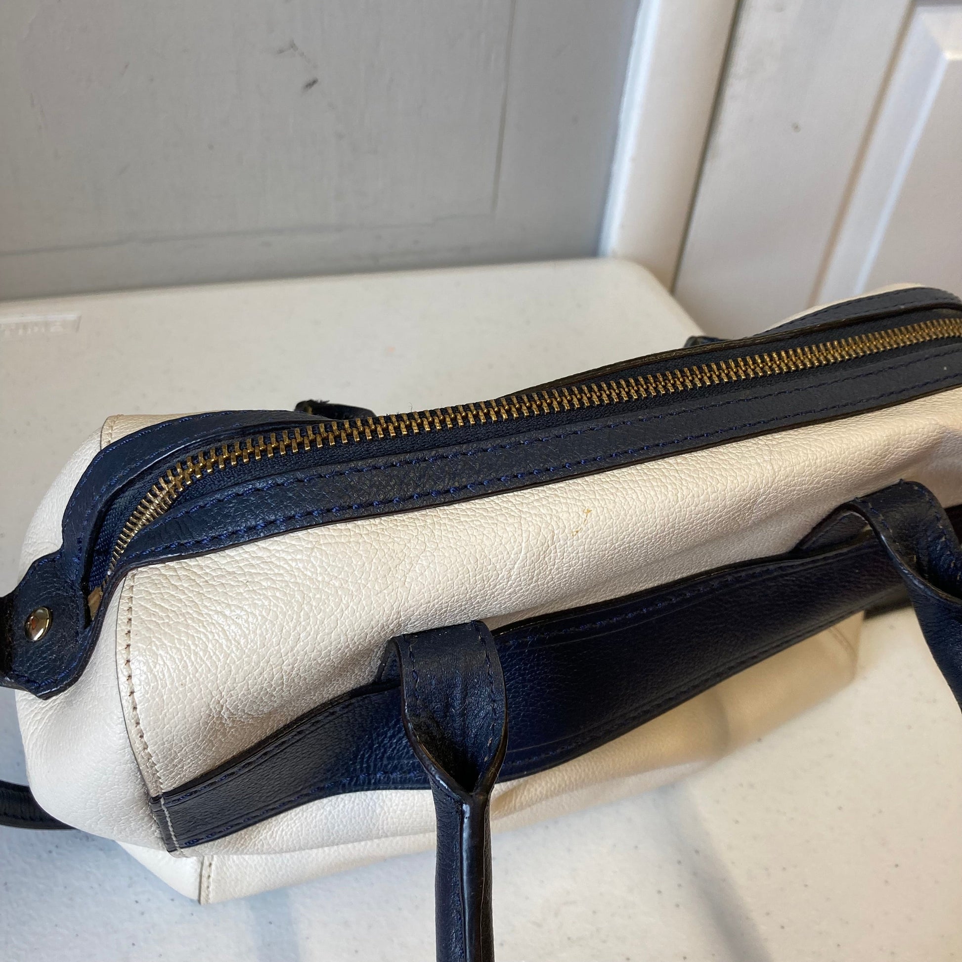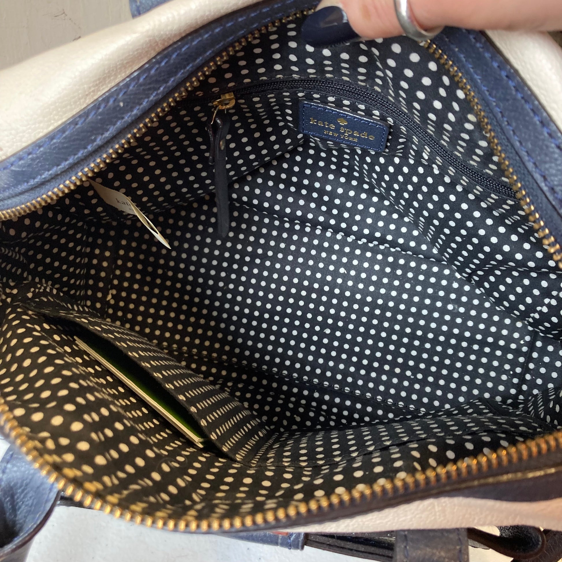 Handbag Designer By Kate Spade In Blue & White, Size:Medium