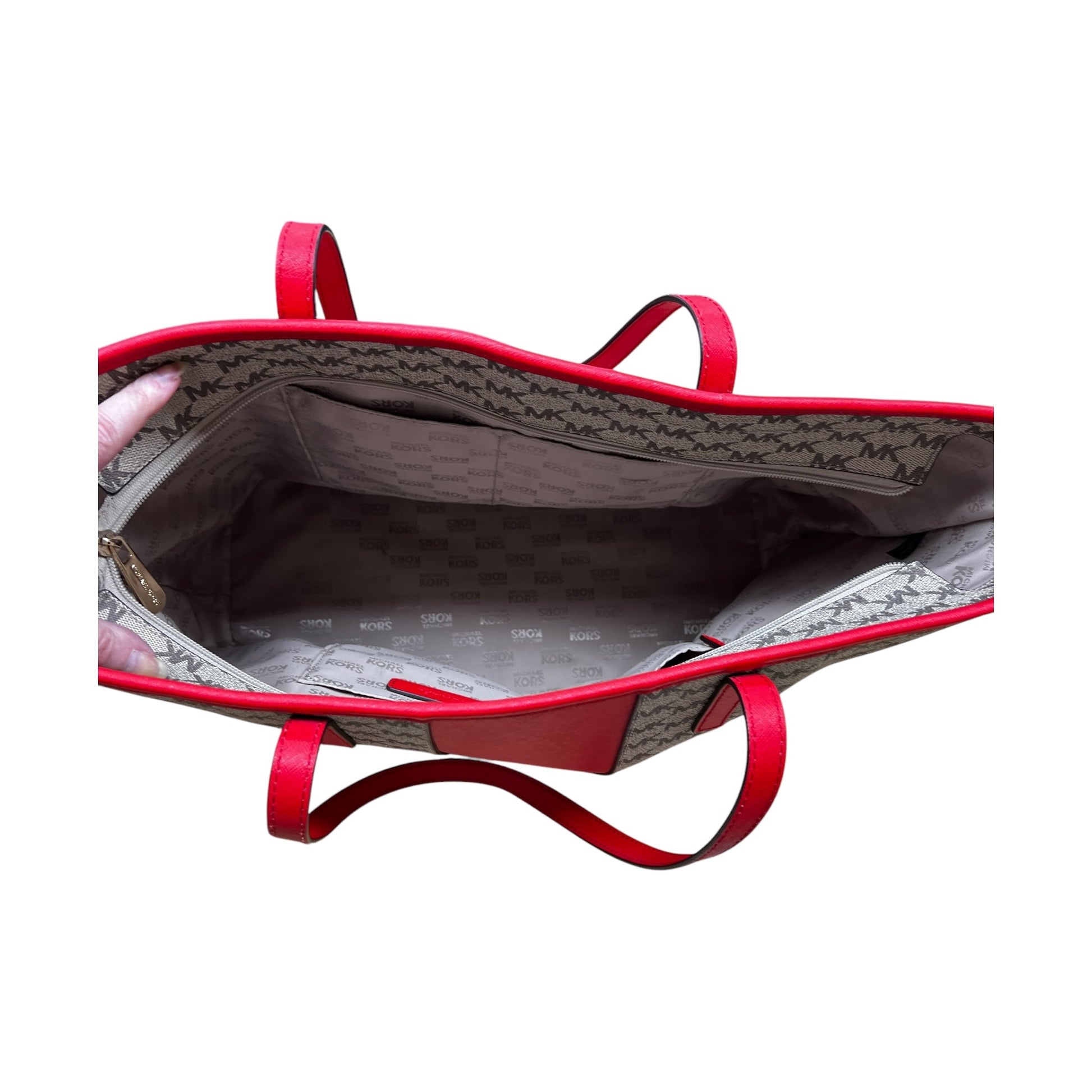 Handbag Designer By Michael Kors In Red & Tan, Size:Large