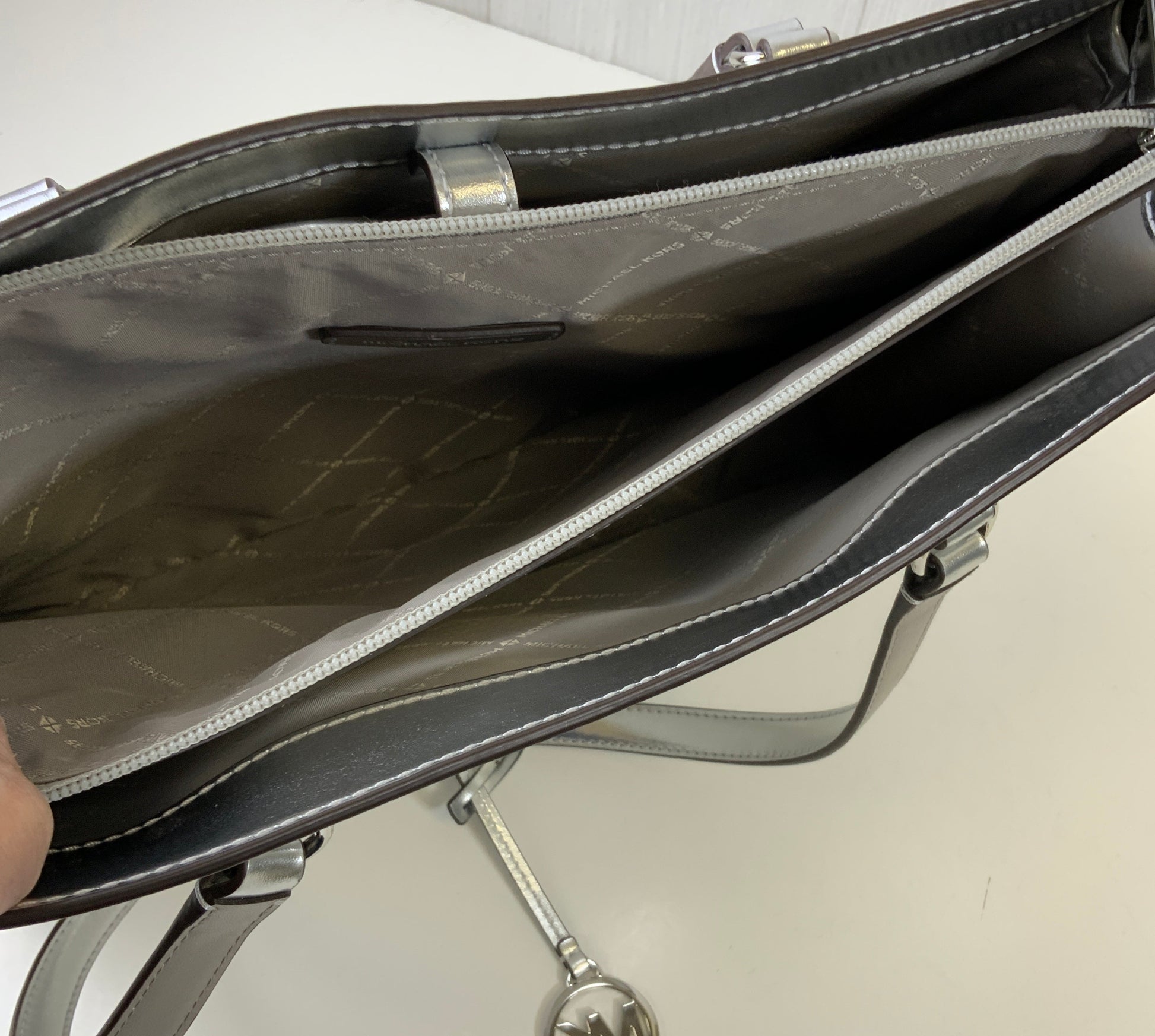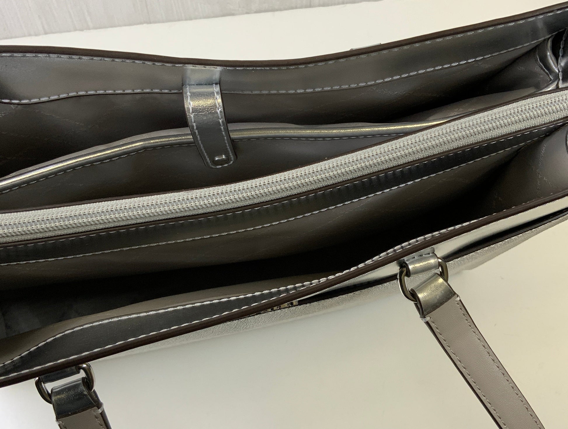 Handbag Designer By Michael Kors In Silver & White, Size:Large