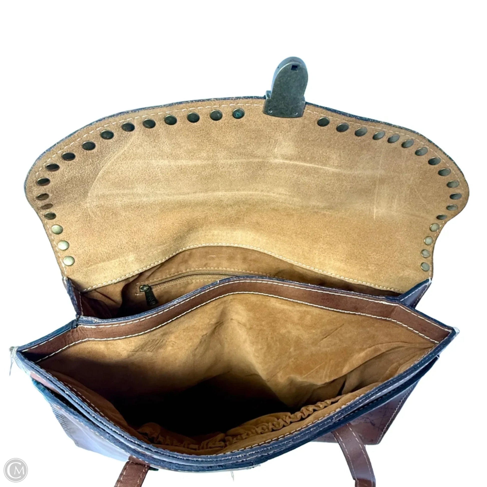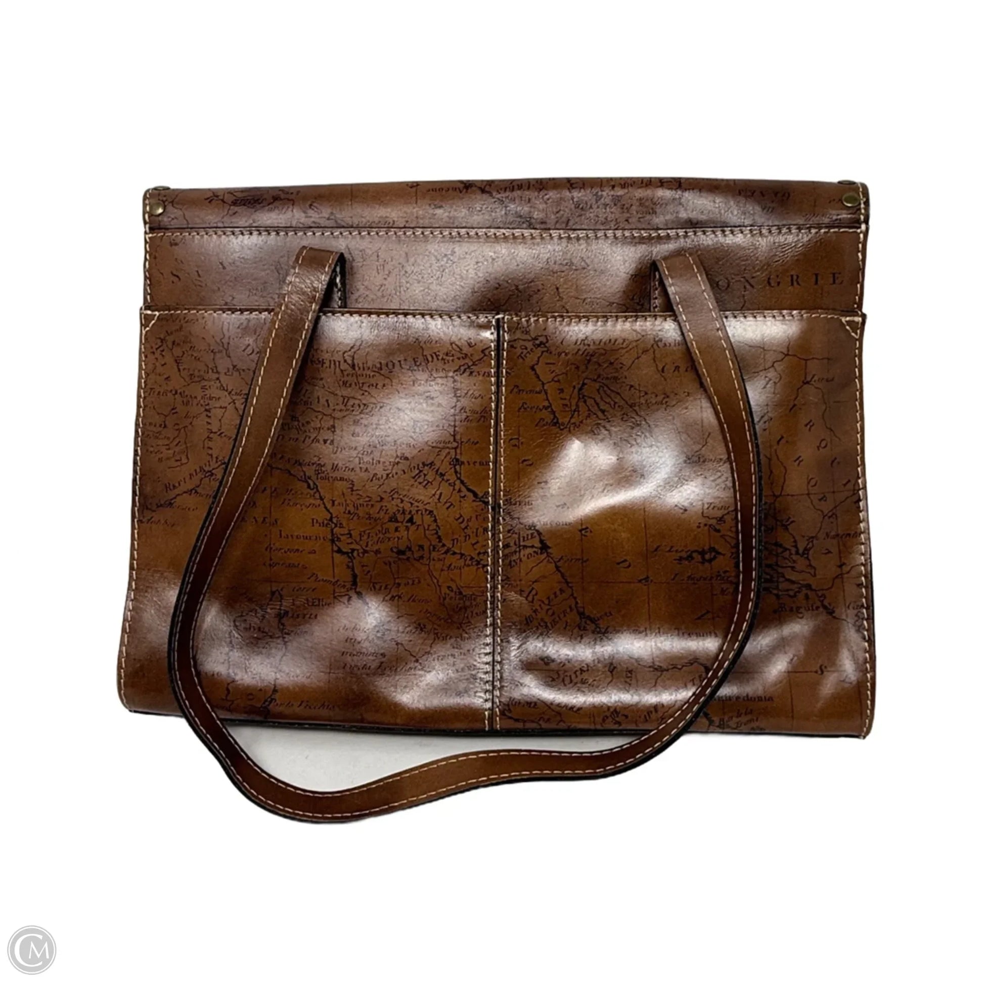 Poppy Map Print Leather Satchel Designer By Patricia Nash, Size: Large