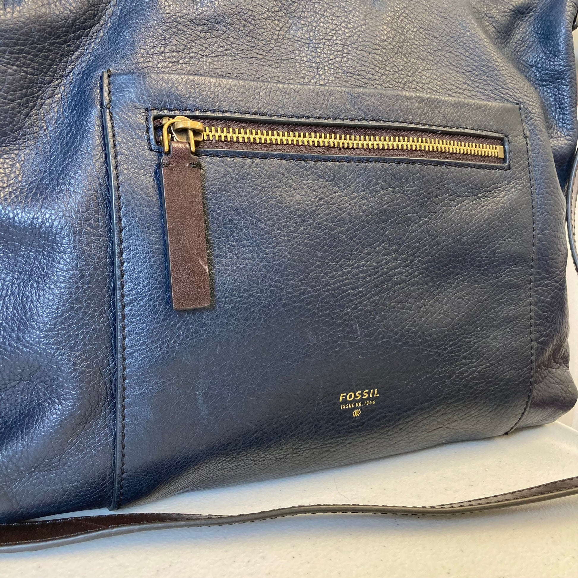 Handbag Leather By Fossil In Navy, Size:Medium