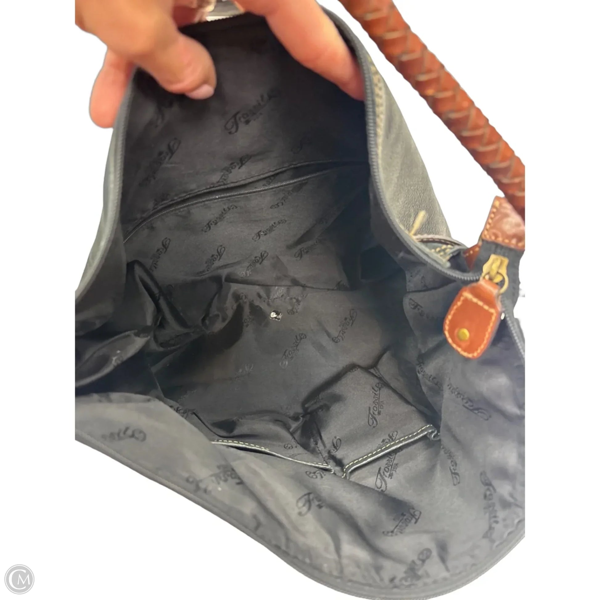 Handbag Leather By Fossil, Size: Medium