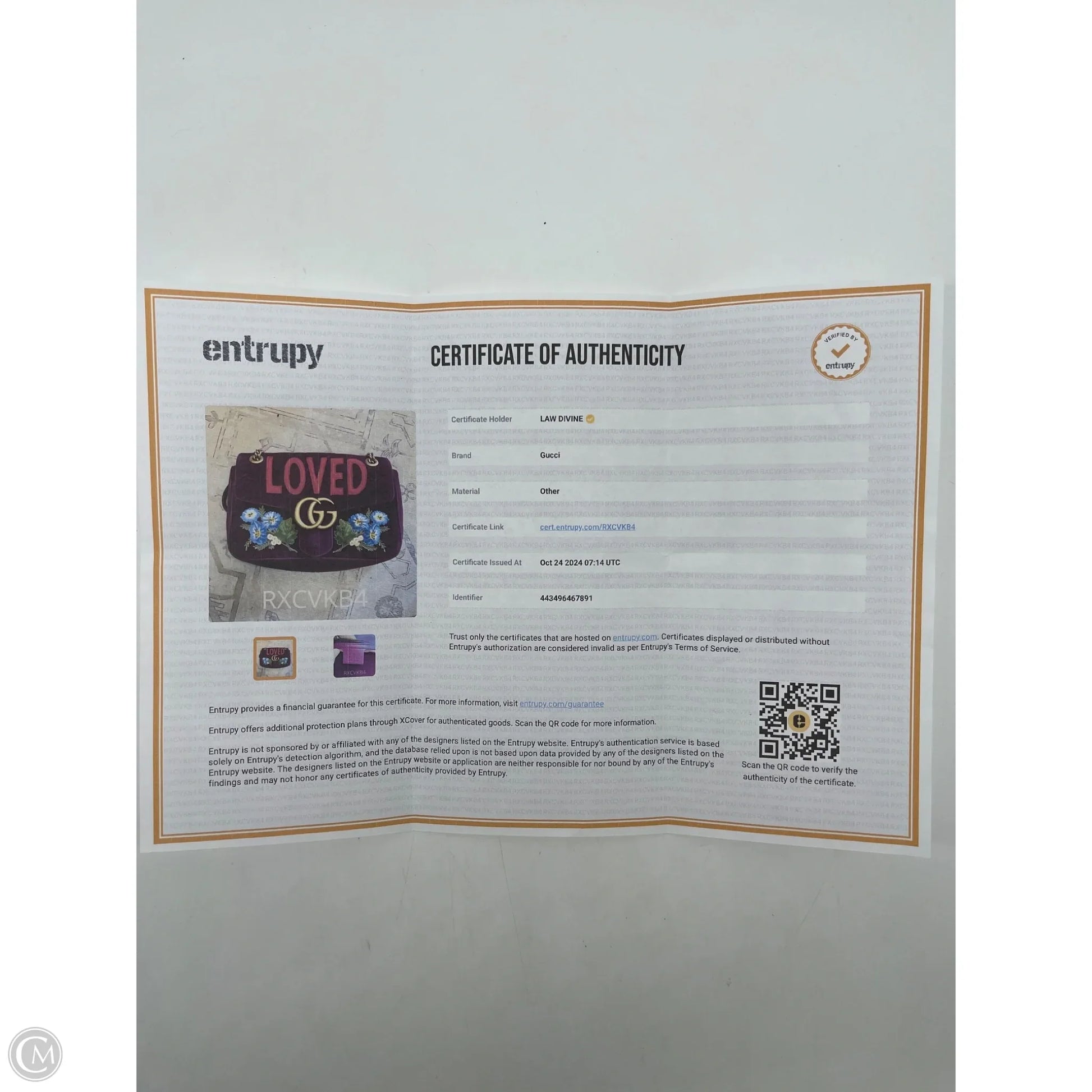 Other Info: VELVET GG MARMONT MATELASSE LOVED EMBROIDERED
