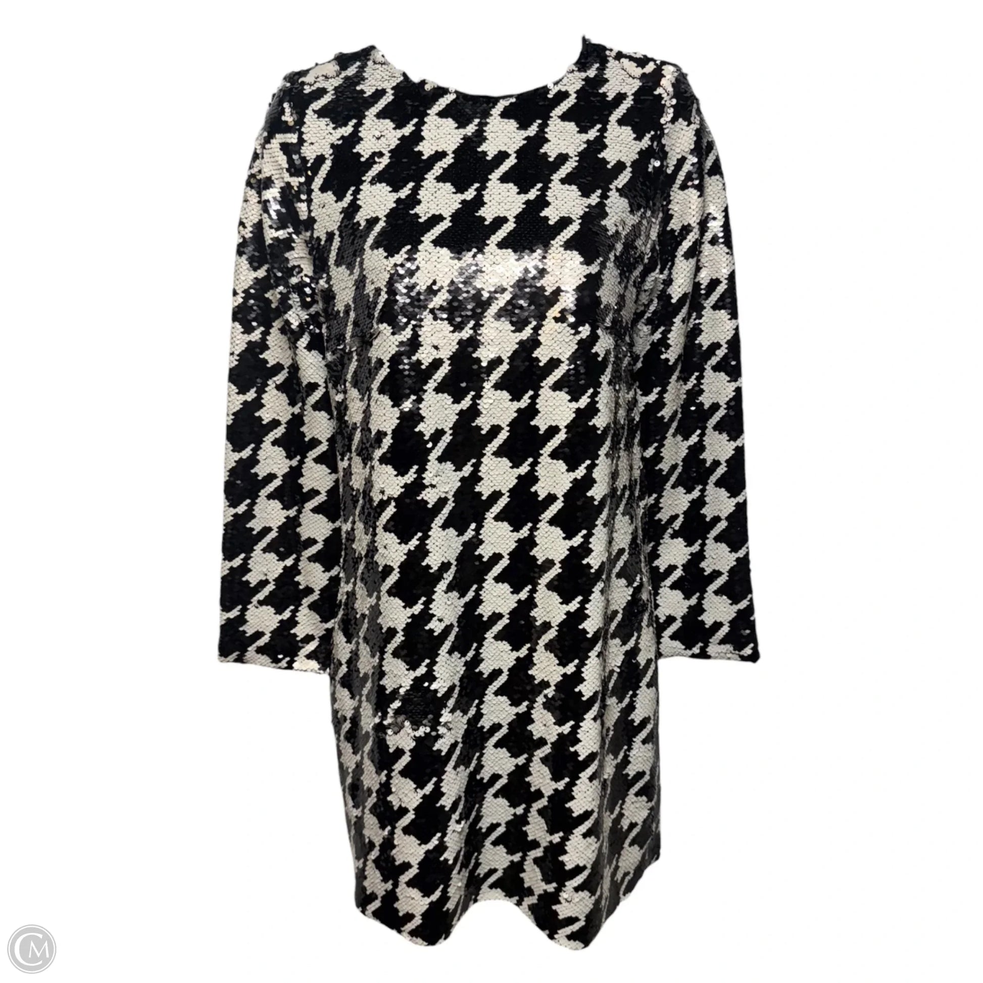 Step into sophistication with the Houndstooth Sequin Dress by Tyler Boe. Embrace the timeless elegance of black and white, crafted in a cozy, stylish fit. Sparkle and shine at your next party in this XS stunner. Dress to impress!