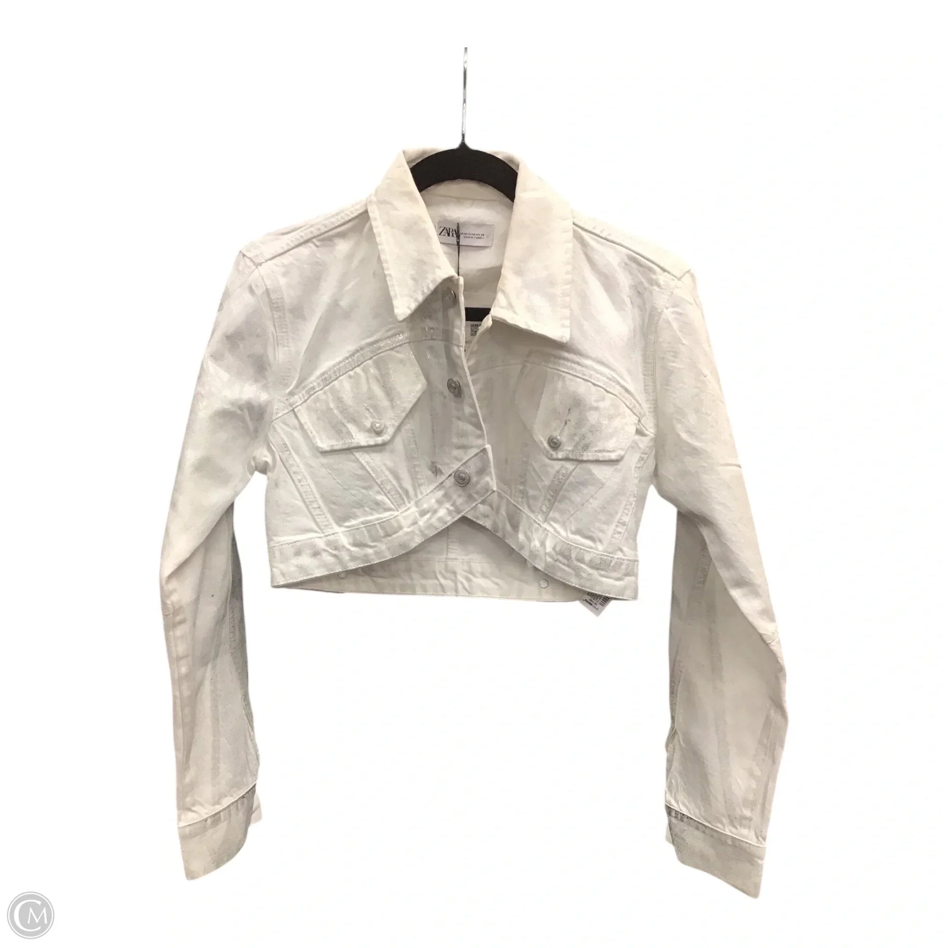 Jacket Denim By Zara In Silver & White, Size: M