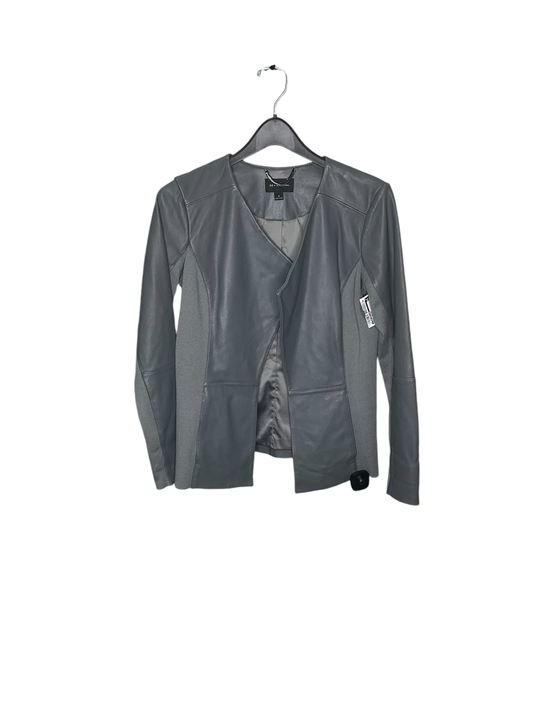 Jacket Leather By H For Halston In Grey, Size: 4
